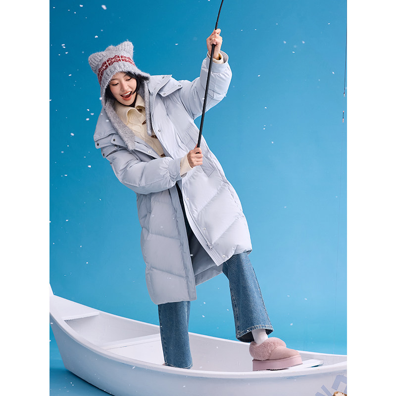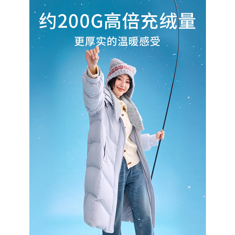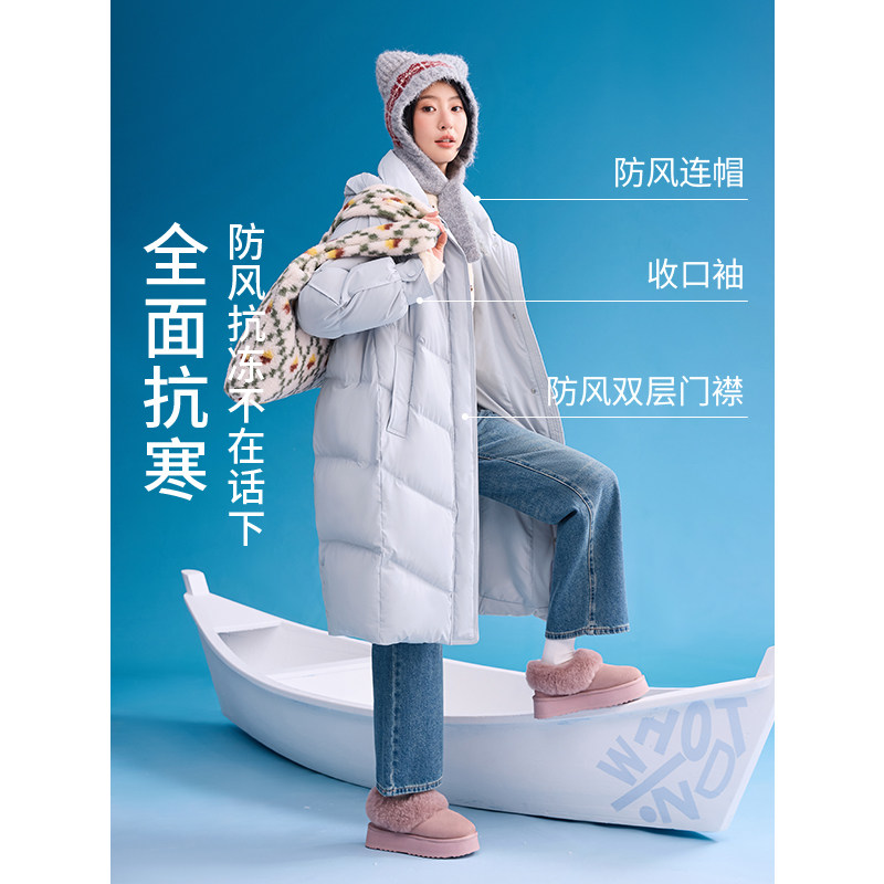 热风女士羽绒服长款连帽羽绒服2025年冬季新款基础加厚羽绒服外套