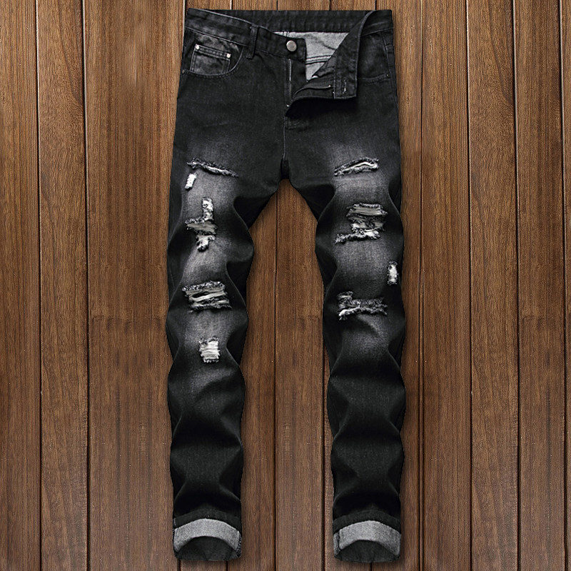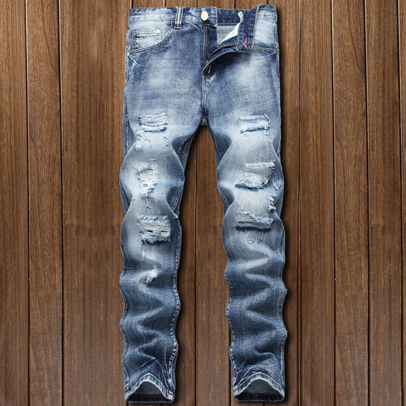 潮牌破洞牛仔裤男直筒韩版浅色休闲宽松长裤乞丐裤百搭大码修身裤