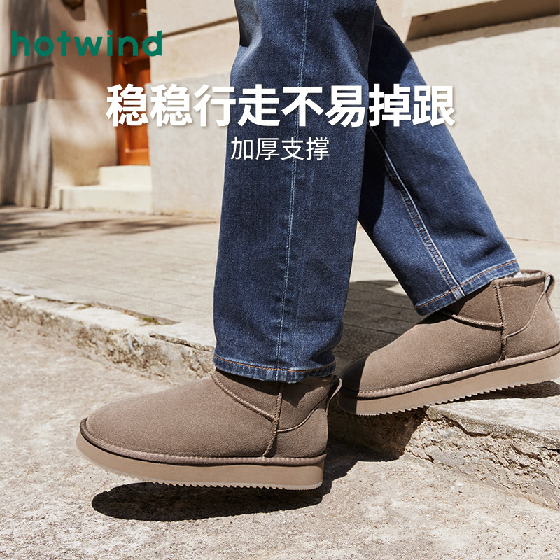 热风男鞋2025年冬季新款男士休闲靴户外雪地靴加绒加厚保暖短筒靴