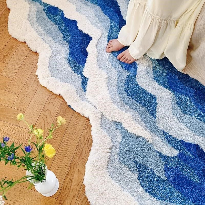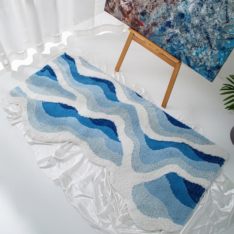 海浪现代卧室床边地毯加厚房间飘垫沙发茶几级感植绒地垫