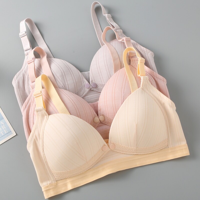 前开扣式哺乳文胸无钢圈薄海绵内衣收副乳聚拢防下垂产后喂奶专用
