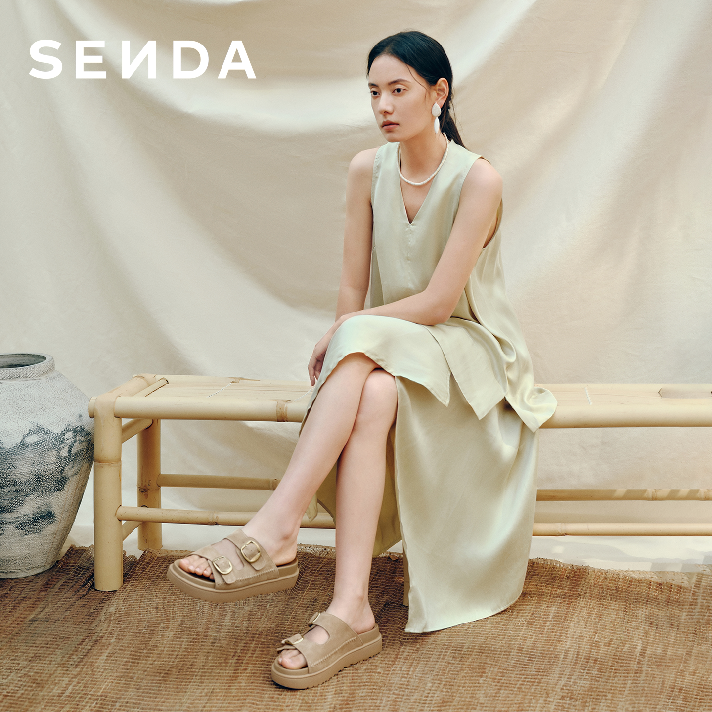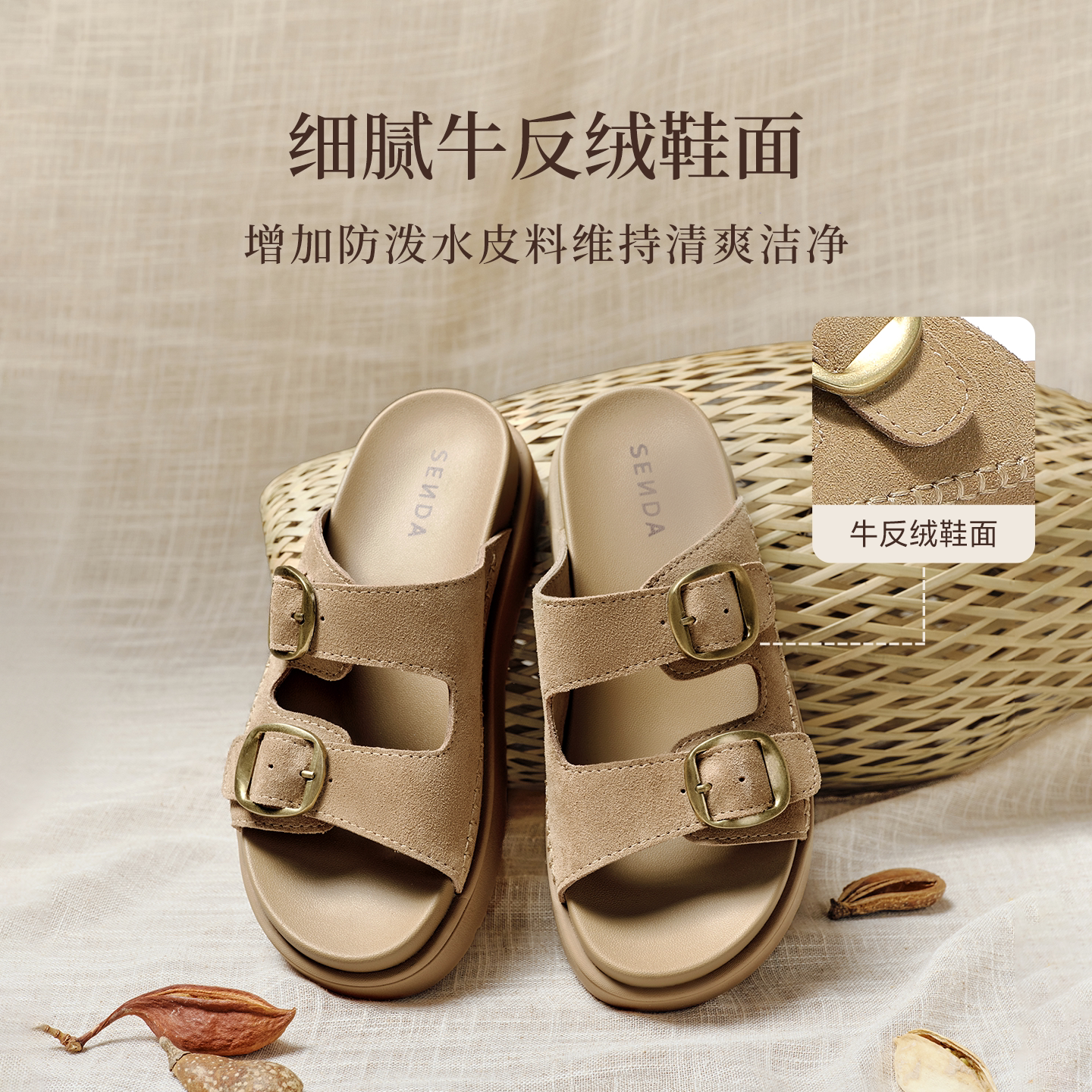 森达勃肯鞋女鞋26夏新款商场同款外穿拖鞋厚底增高凉拖鞋XYX04