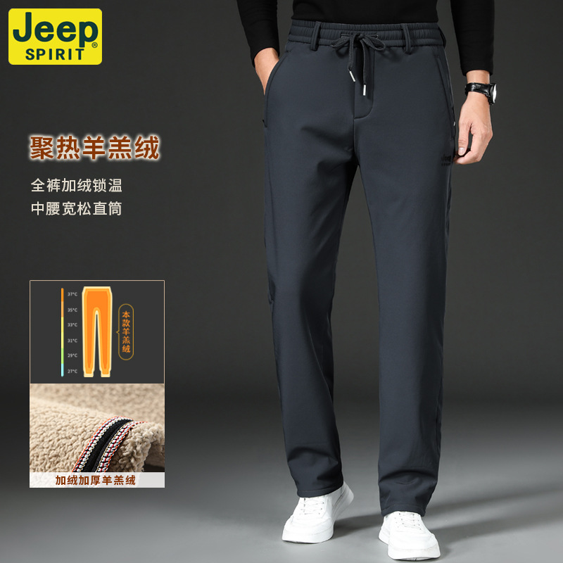 JEEP SPIRIT秋冬加绒加厚运动休闲裤男宽松大码长裤子卫裤羊羔绒