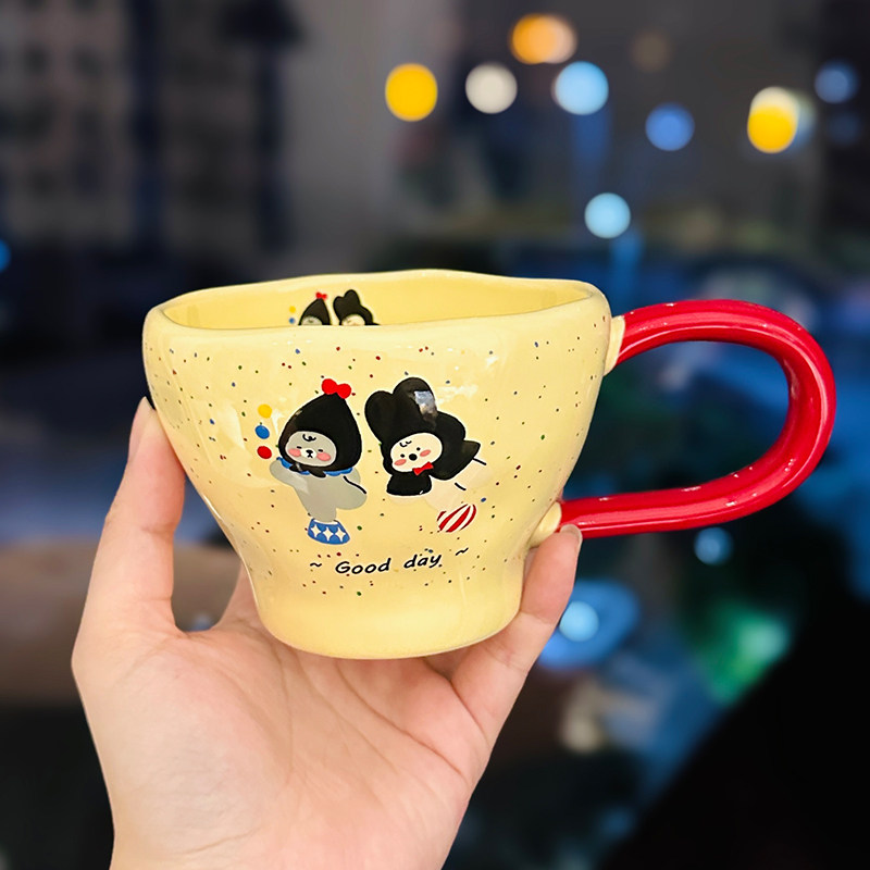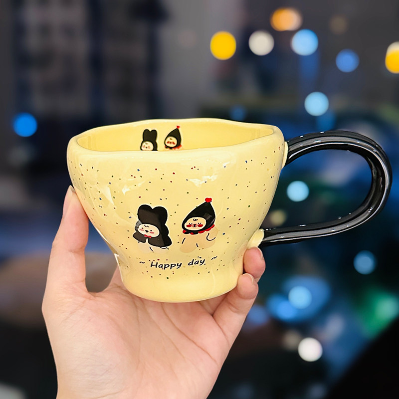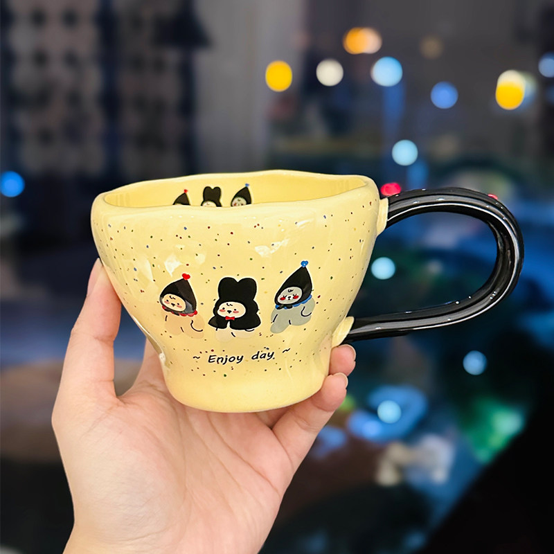设计感兔熊马克杯家用早餐高颜值陶瓷水杯可爱女生办公室咖啡杯子