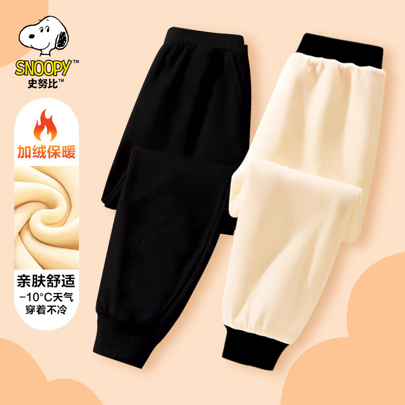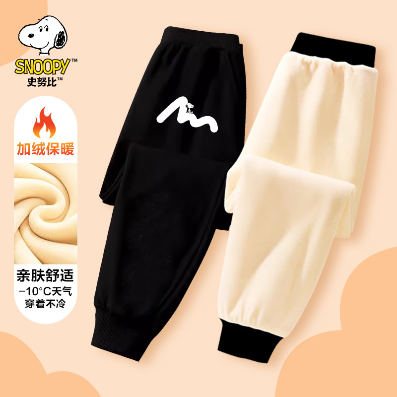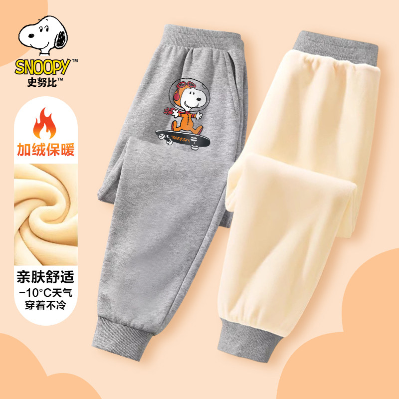 史努比男童裤子2024新款加绒加厚棉裤一体绒秋冬保暖冬季儿童卫裤