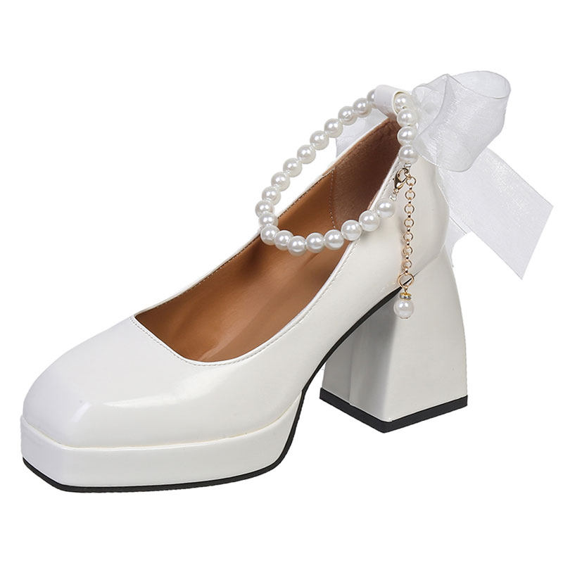 高跟小皮鞋女春秋2026新款白色法式婚鞋复古粗跟厚底增高玛丽珍鞋