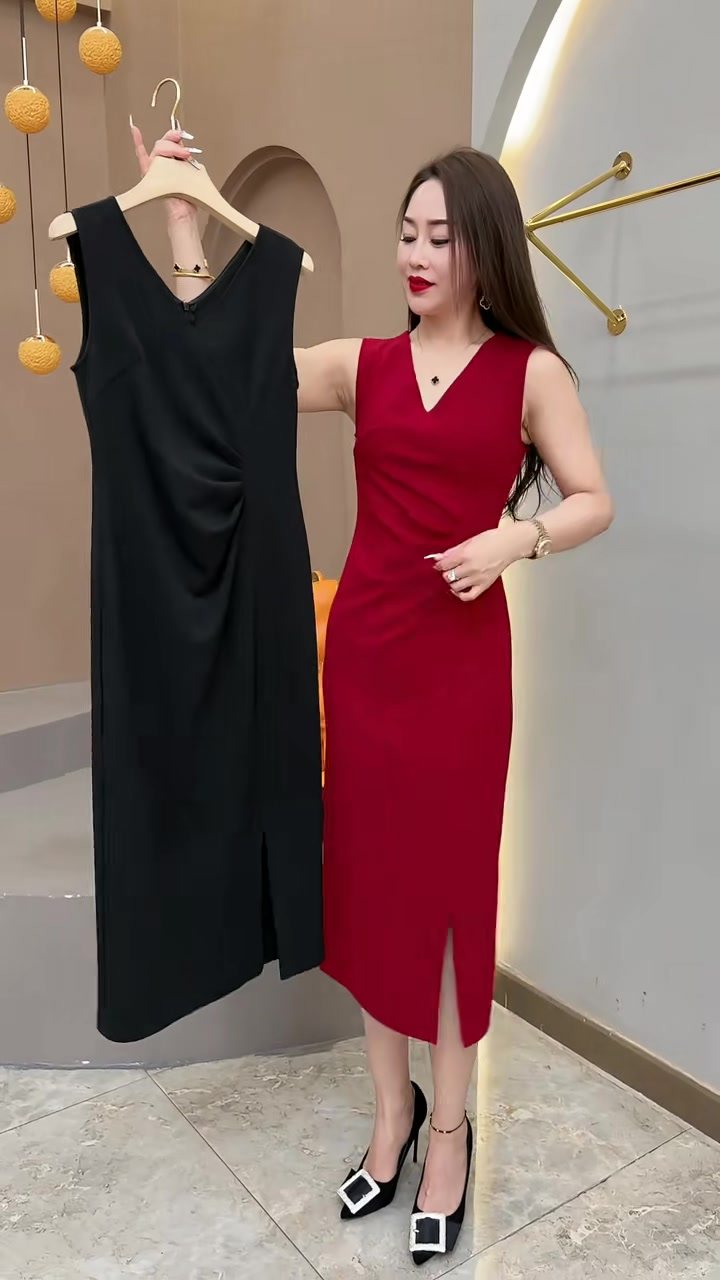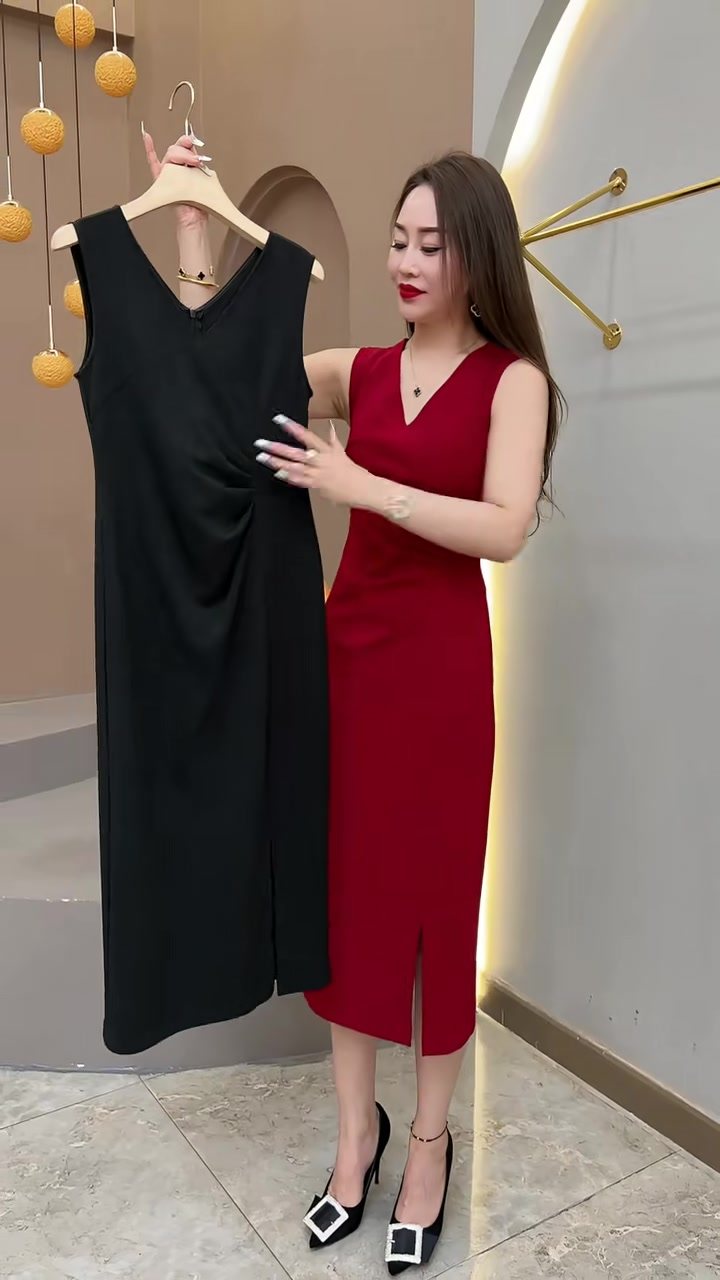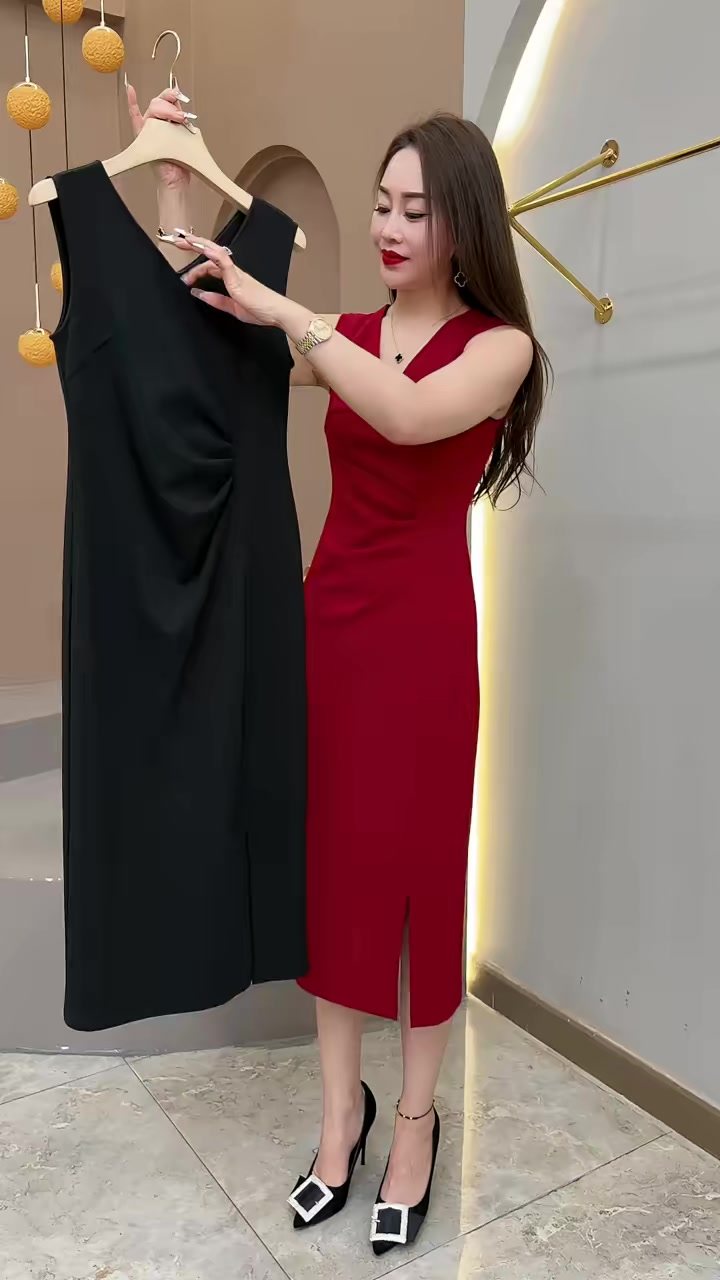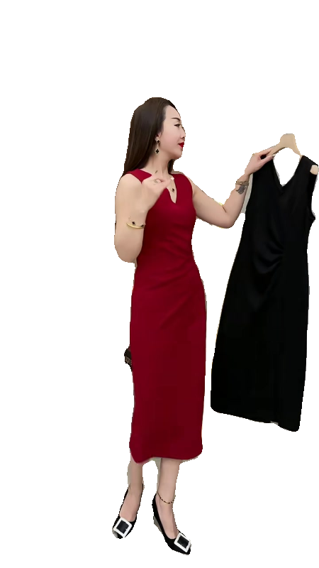 气质高街时尚百搭连衣裙女2024夏季新款V领修身显瘦中长款裙子潮