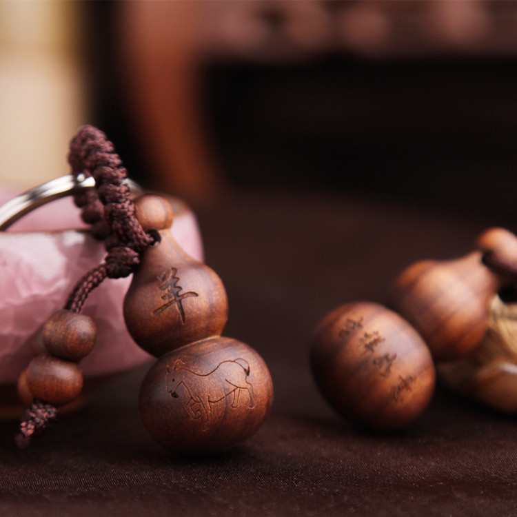 开黑檀桃木小葫芦转财十二生肖辟保平安招运男女包汽车钥匙扣