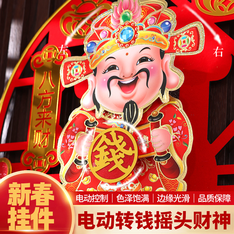 2025新款点头财神爷挂件点头加转钱财神爷挂件财神爷挂饰春节挂饰