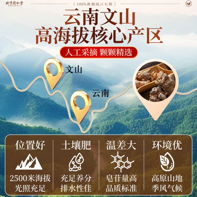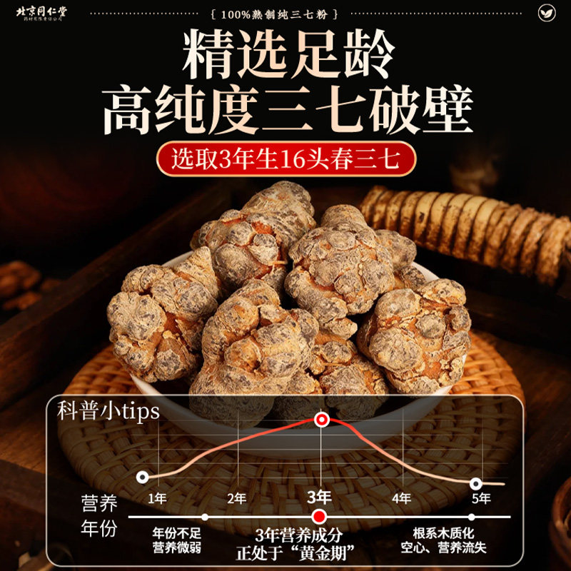北京同仁堂内廷上用云南文山三七粉正品官方旗舰店正宗纯田七细粉