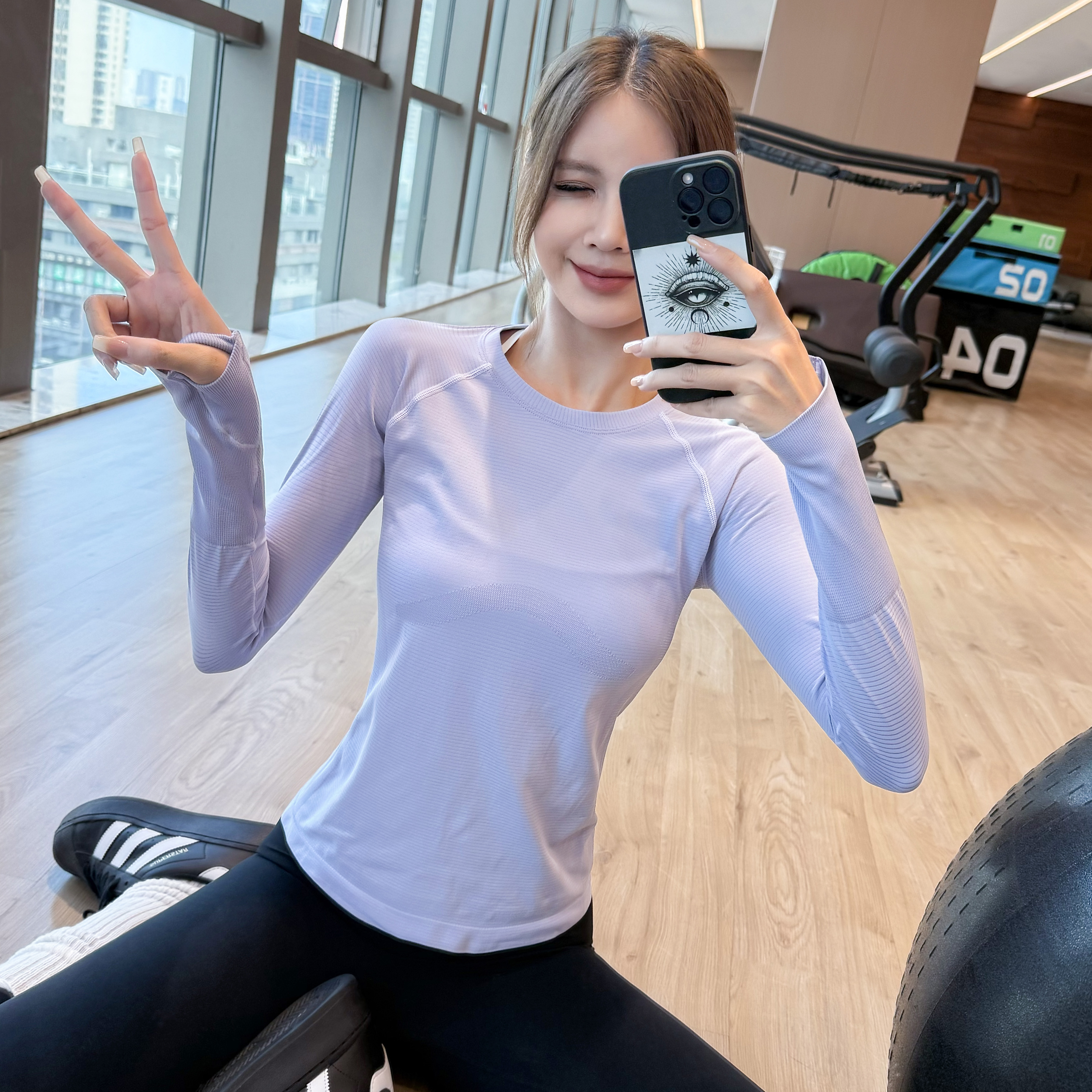 岚纹瑜伽服女普拉提修身显瘦高弹圆领健身服长袖跑步速干运动上衣