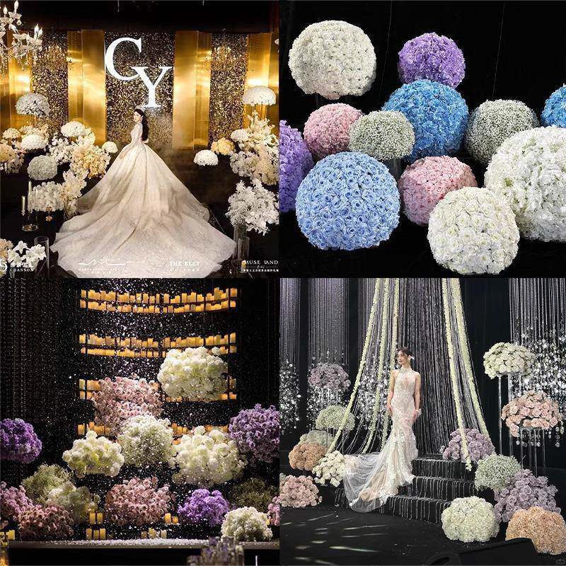 网红花球婚庆仿级真球花球婚礼场景布置用品高感玫瑰花绢婚花礼堂