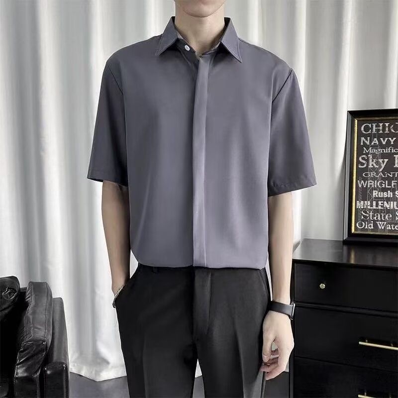 冰丝短袖衬衫男士潮流高级垂感痞帅ins休闲百搭夏季半袖免烫衬衣