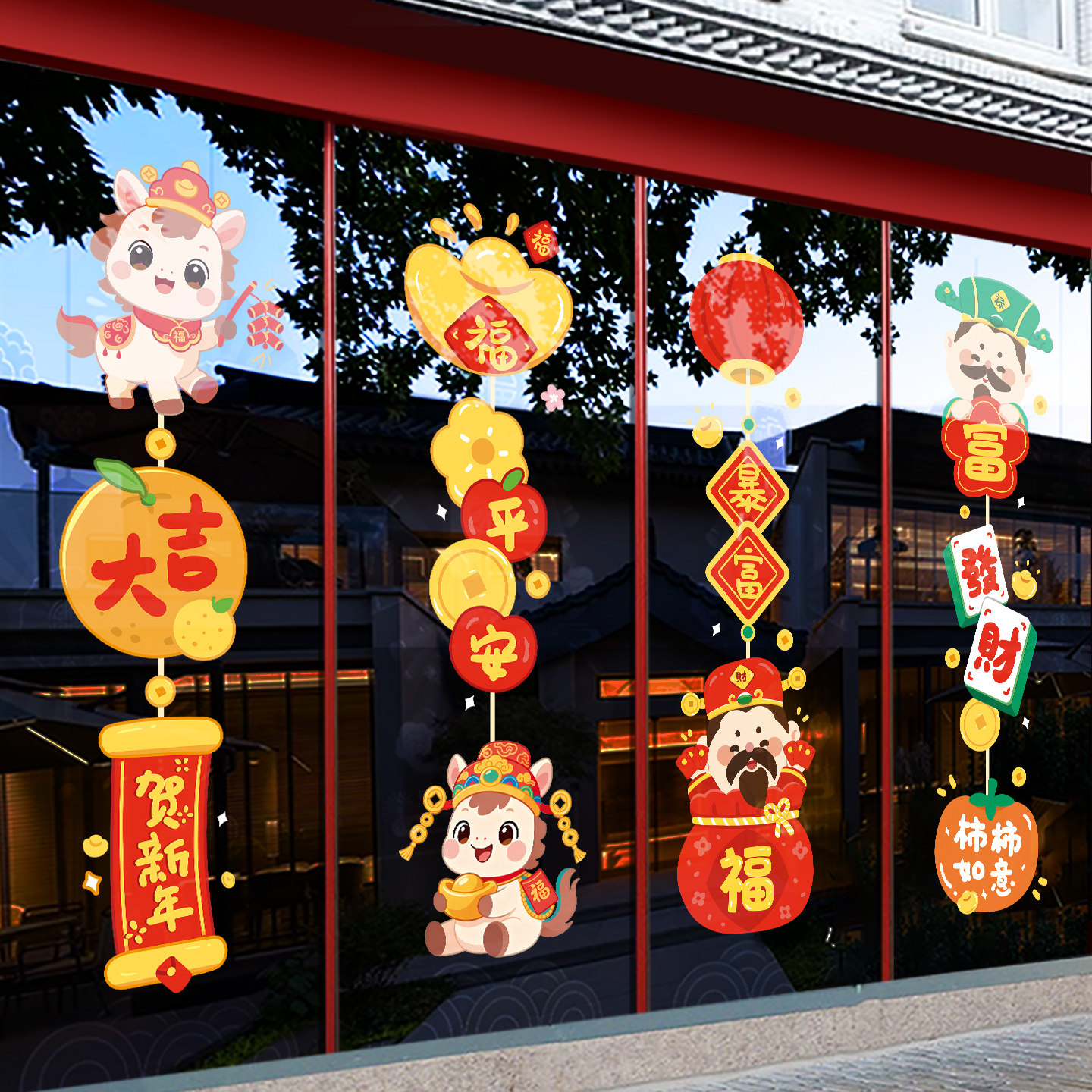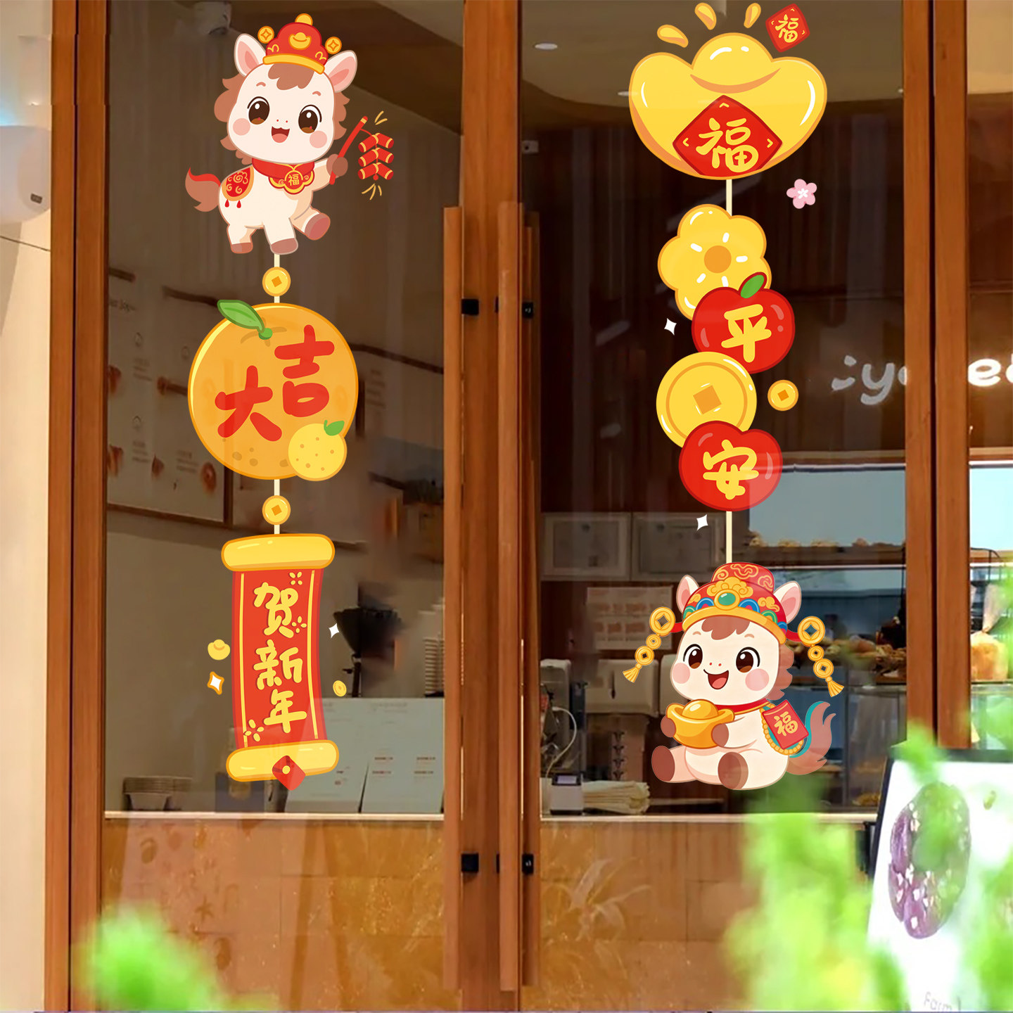 2026新年春节装饰窗花贴画玻璃门贴马年窗贴过年场景布置氛围贴纸