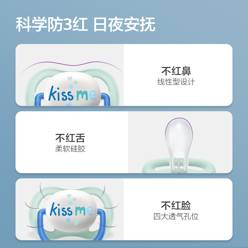 飞利浦新安怡安抚奶嘴3-6个月一岁以上新生婴儿全硅胶扁头日夜用