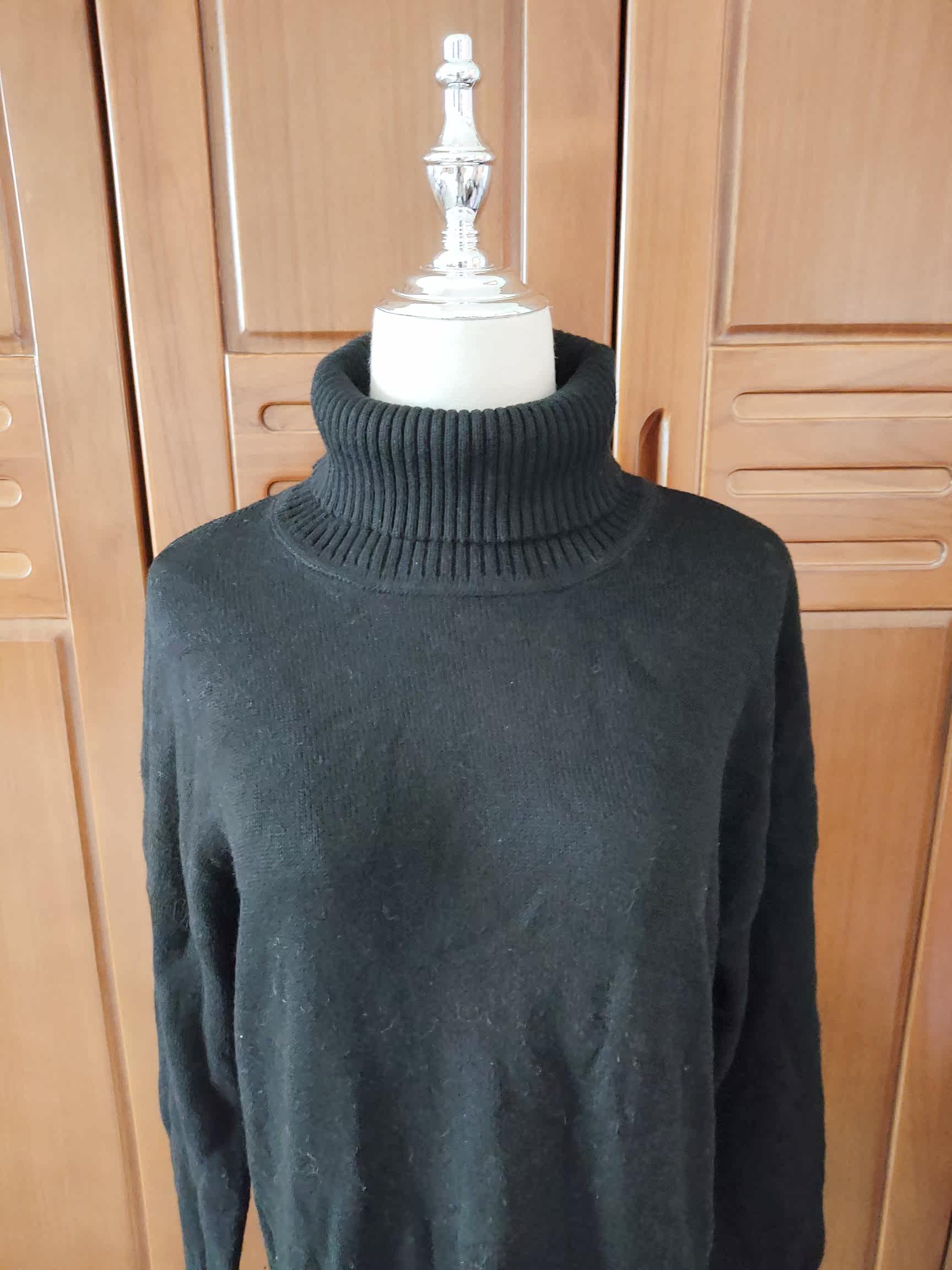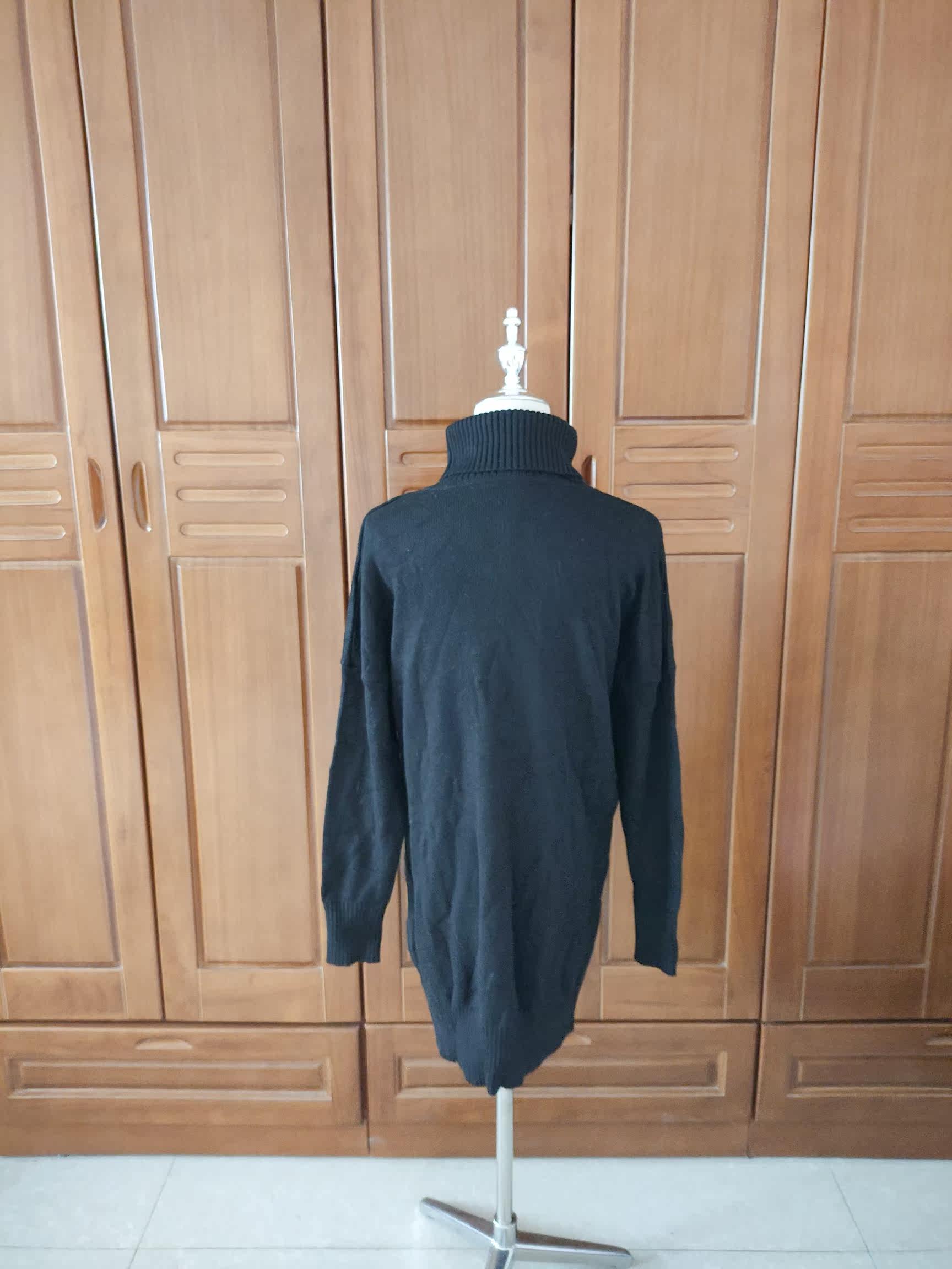 秋冬高领宽松百搭长袖黑色简约中长款套头针织毛衣内搭打底衫