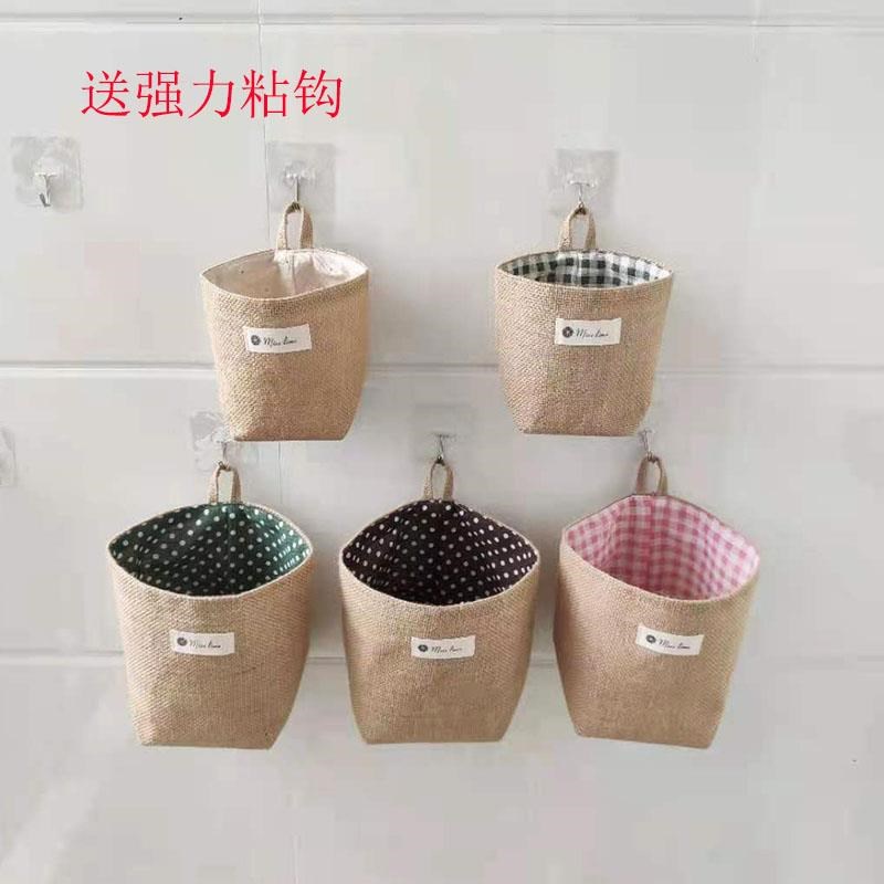 桌面棉麻收纳袋杂物挂袋墙挂式门后小H挂兜布艺储物袋卫生纸挂袋