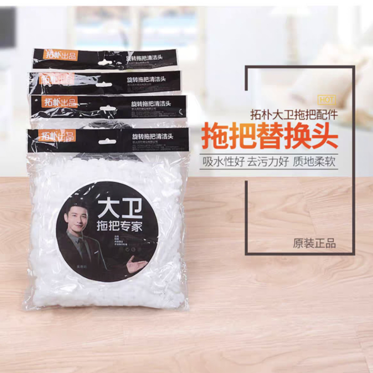 正品大卫拖把头替换头原装正品拖布头配件吸水通用旋转墩布头