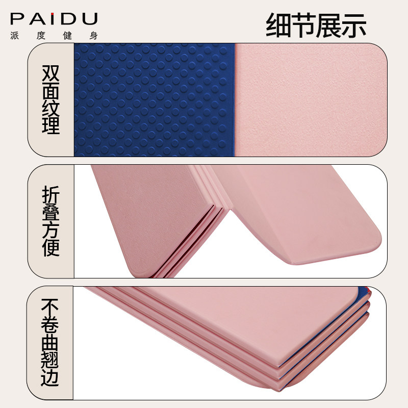 派度可折叠瑜伽垫加厚防滑家用健身垫学生女宿舍隔音减震运动地垫