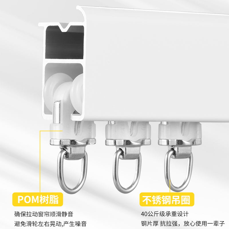 方型窗帘轨道静音坚美铝合金滑轨顶装隐藏式安装码新款单轨侧装