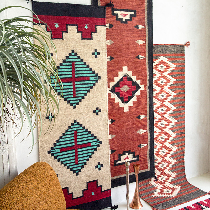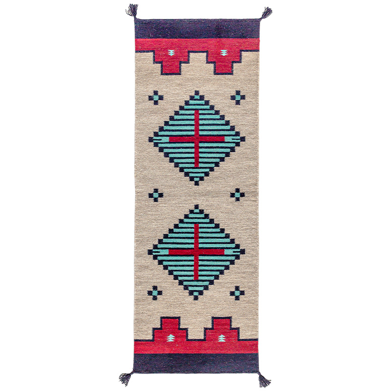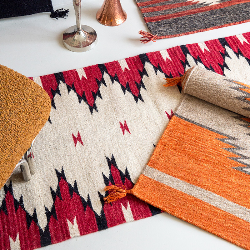 视觉味道 进口羊毛地毯卧室床边毯走道红色kilim客厅波西米亚无胶