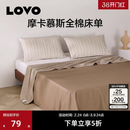 罗莱LOVO纯棉床单单件100棉被单