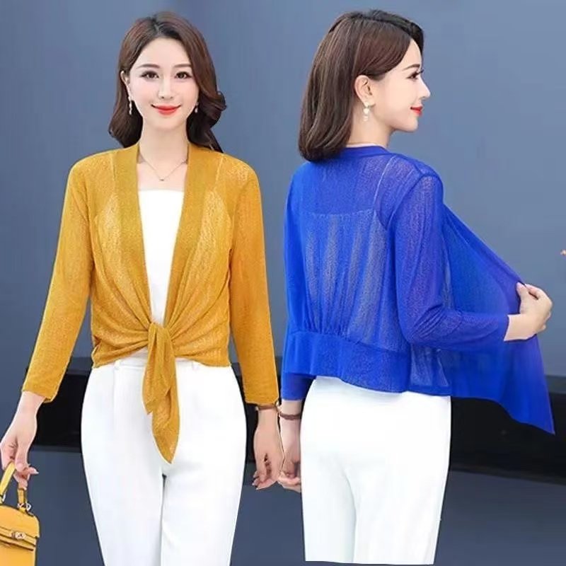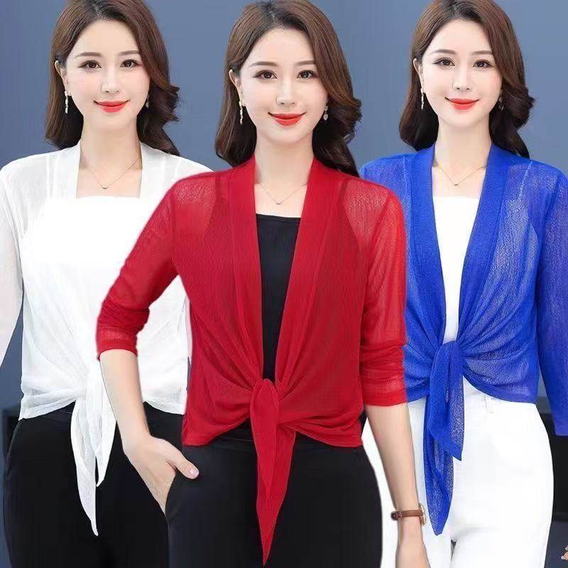 超好看冰丝开衫女薄款披肩外搭高级感夏季网纱短款防晒衣显瘦上衣