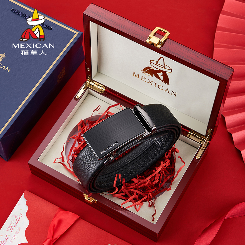 稻草人男士真皮皮带2023新款高档商务自动扣腰带年轻人时尚牛皮潮