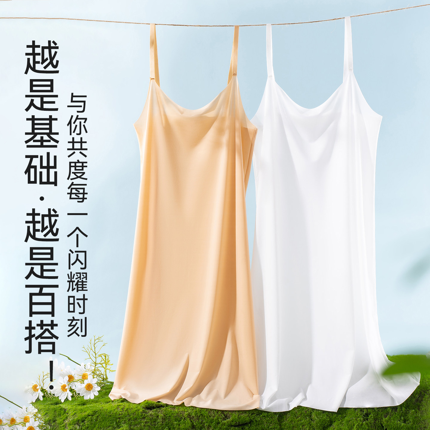 防透吊带内衬裙无痕冰丝女夏内搭防走光连衣裙打底裙背心白色睡裙