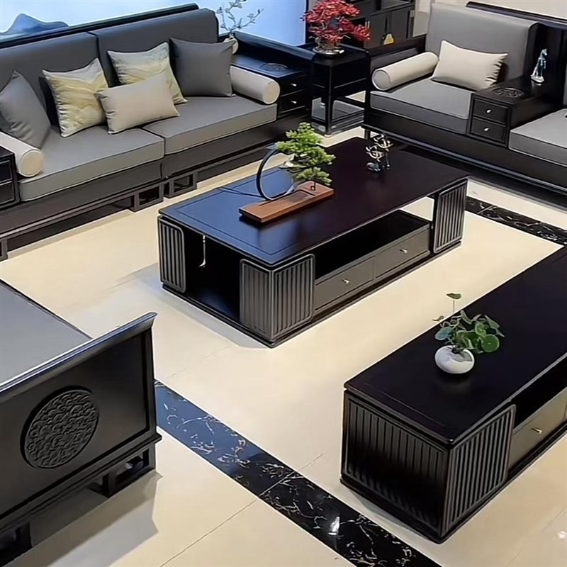 新中式乌金木沙发组合简约现代禅意别墅客厅大小户型平层实木家具