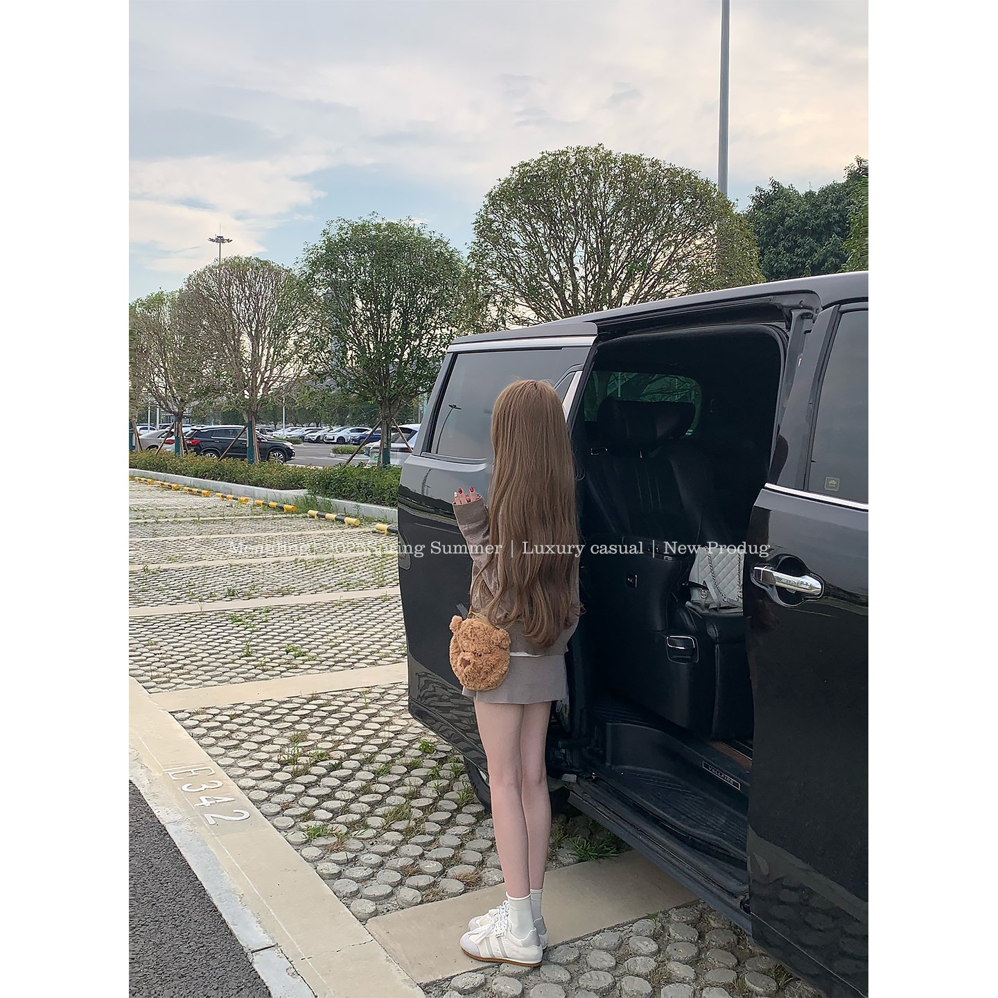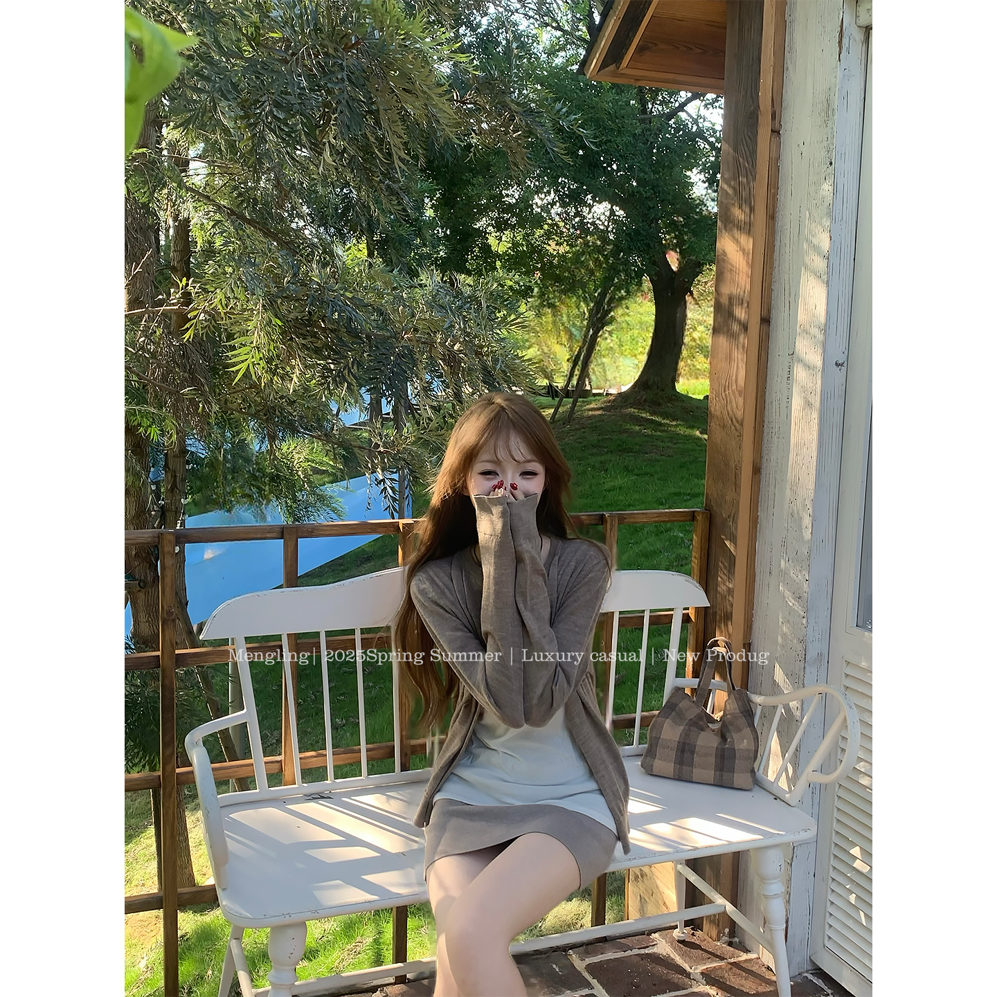 Mengling梦玲 枫间漫步 羊毛针织开衫混色燕麦背心半身短裙三件套