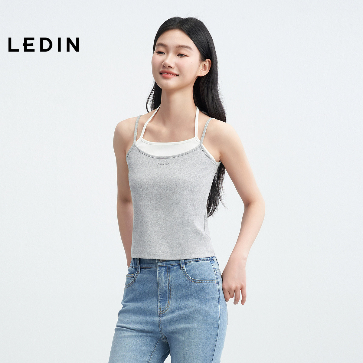 乐町韩系假两件吊带背心2025年夏季新款百搭短款修身版型内搭上衣