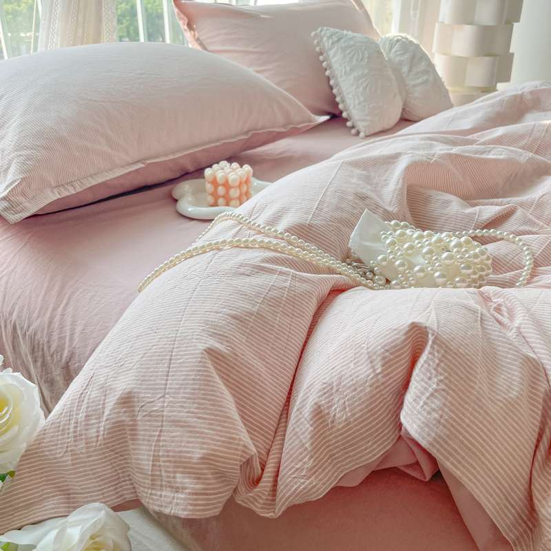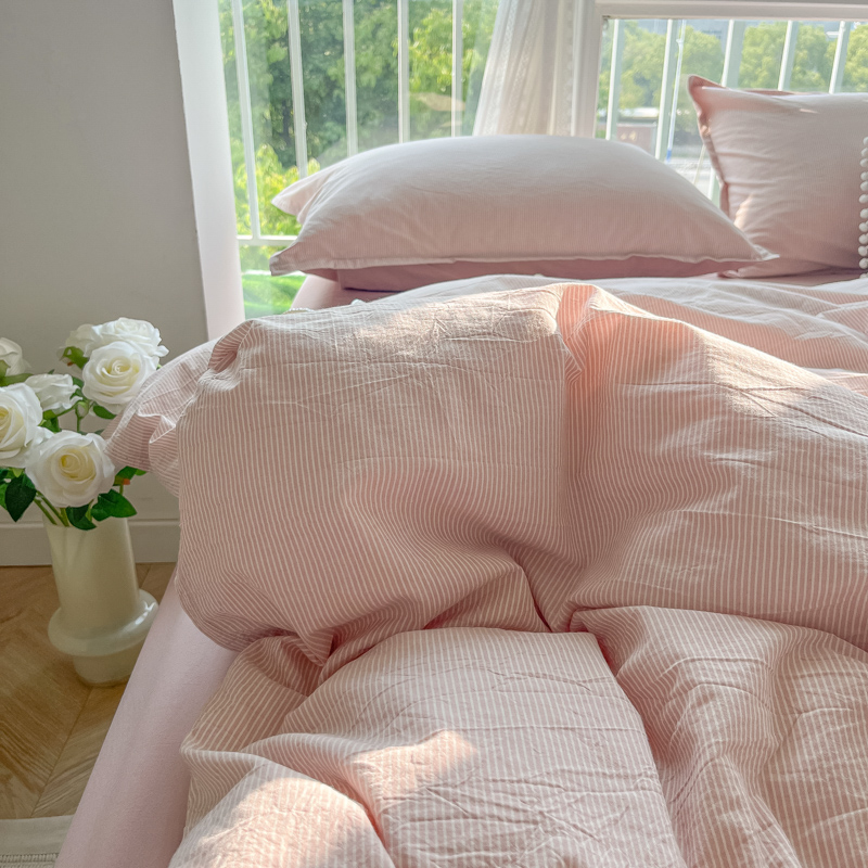条纹四件套夏季非纯棉全棉床单笠被套床上用品三夏天宿舍夏被罩凉