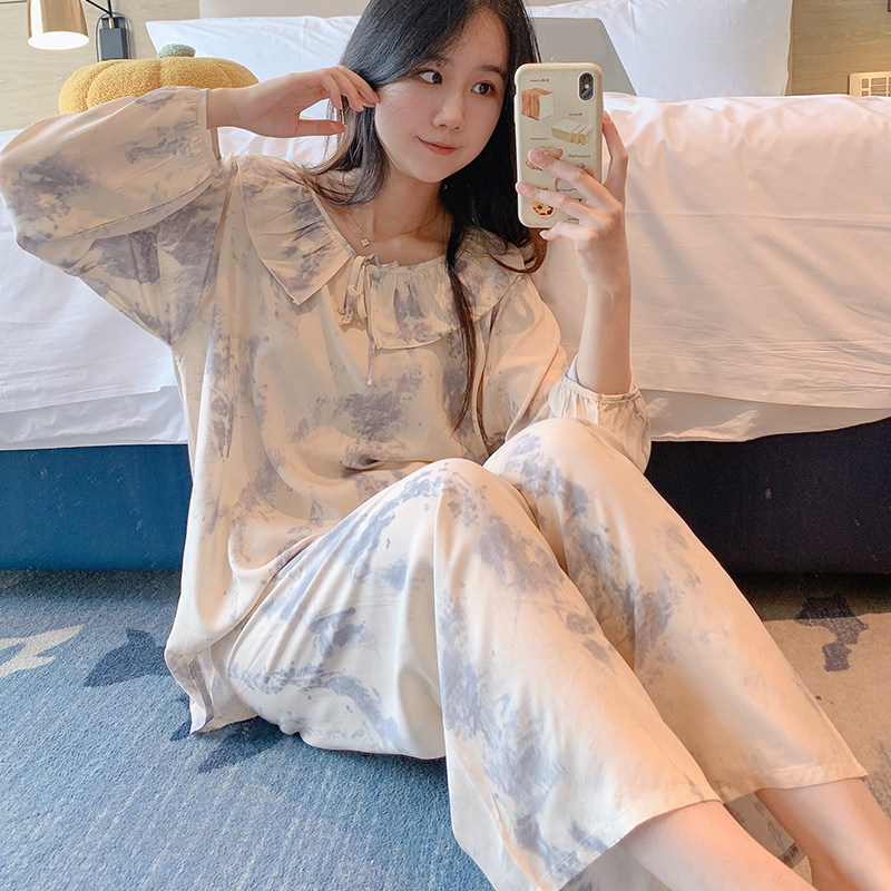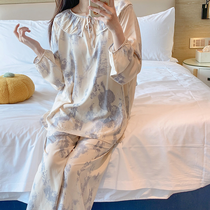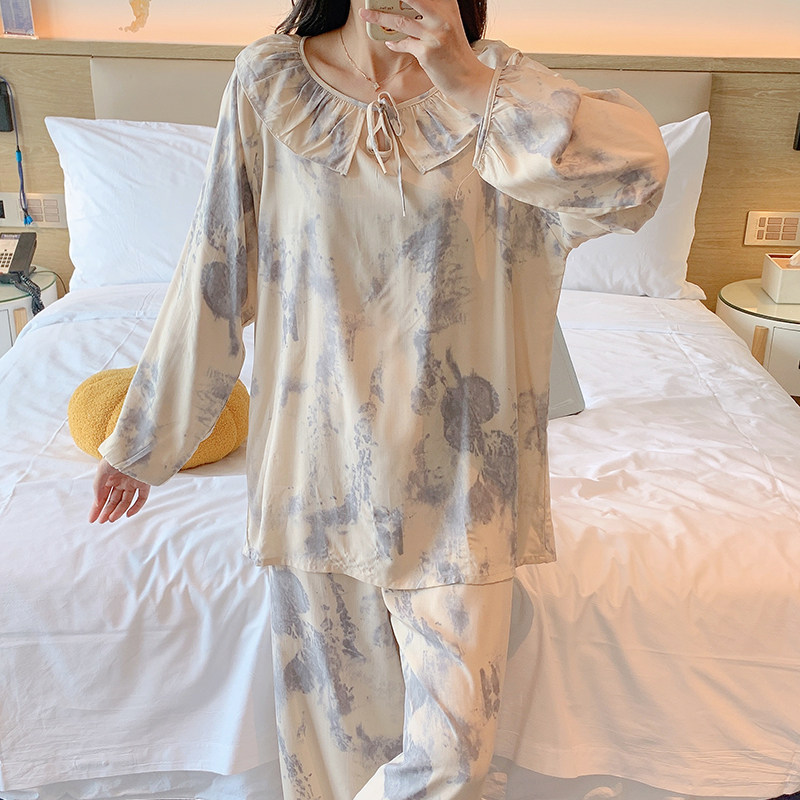 新款棉绸睡衣女春夏季家居服套装女宽松绵绸高级感人造棉大码长袖