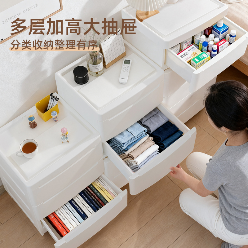 爱丽思床头柜塑料抽屉式收纳柜加厚收纳置物架柜子斗柜爱丽丝官方