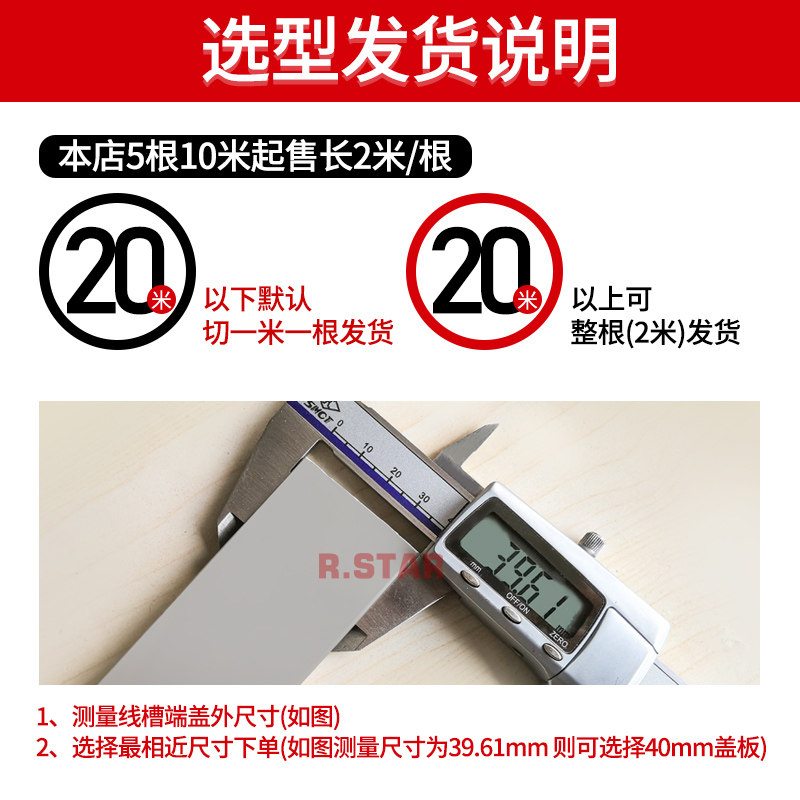 R.STAR线槽盖板PVC配线槽塑料盖子灰色滑盖宽30/33/35/40/45/50MM