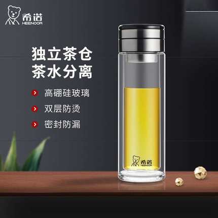 希诺双层茶水分离玻璃杯子热茶杯商务杯XN-7093 XN-7095 XN-7096