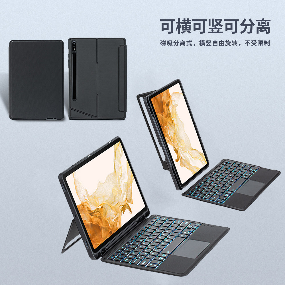 适用三星S11平板保护壳S9FE+蓝牙键盘套磁吸保护套S10/S8/S7 plus转轴支架S9+防摔壳S9U/S10U皮套一体可拆卸