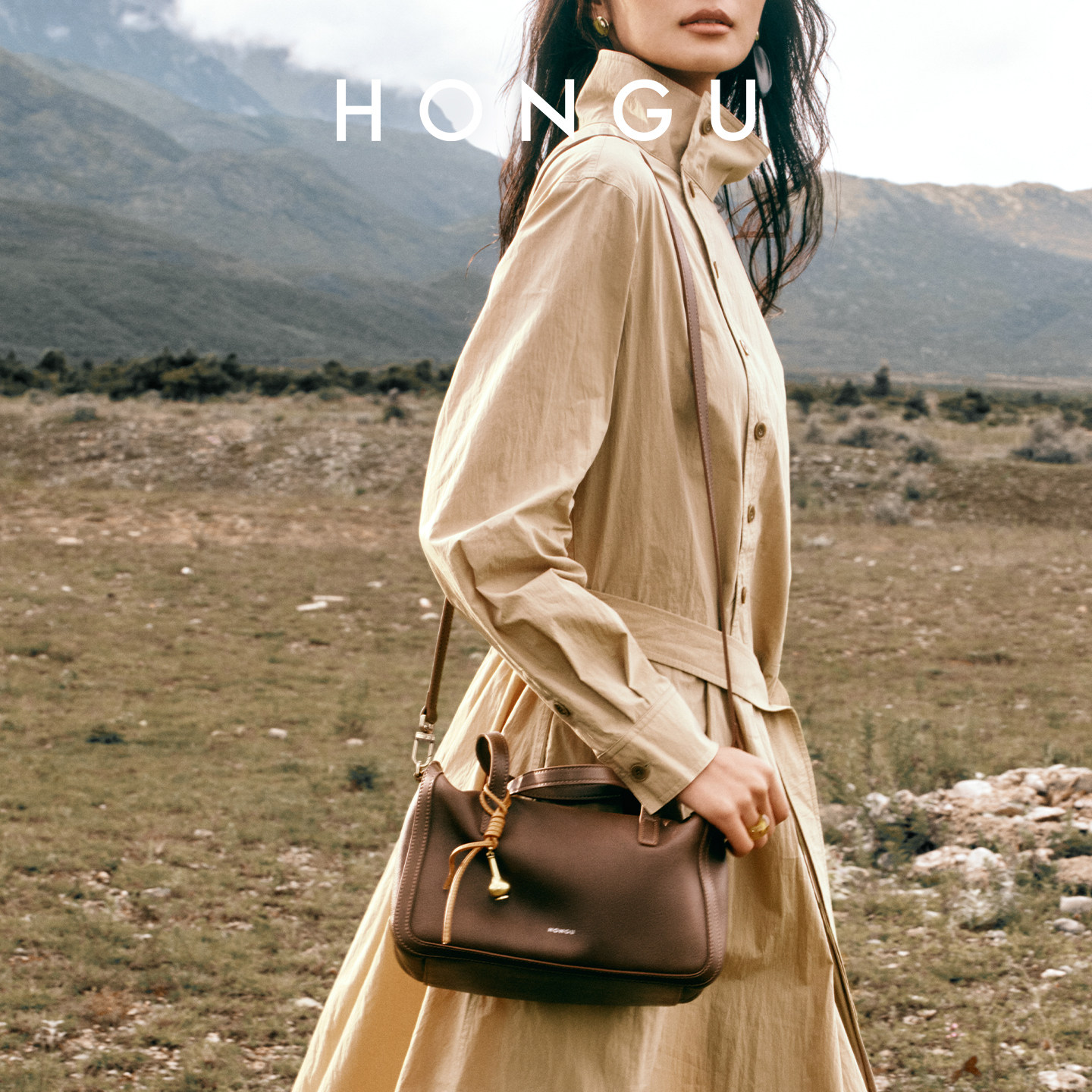 红谷女包高级感复古手拎单肩包真皮斜挎包手提包7154
