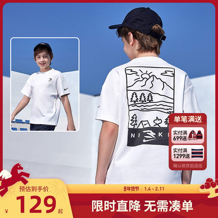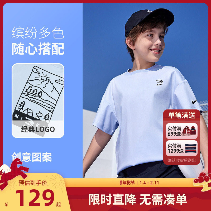 Nike 3brand童装男童短袖2025夏季T恤纯棉大童儿童运动上衣半袖潮