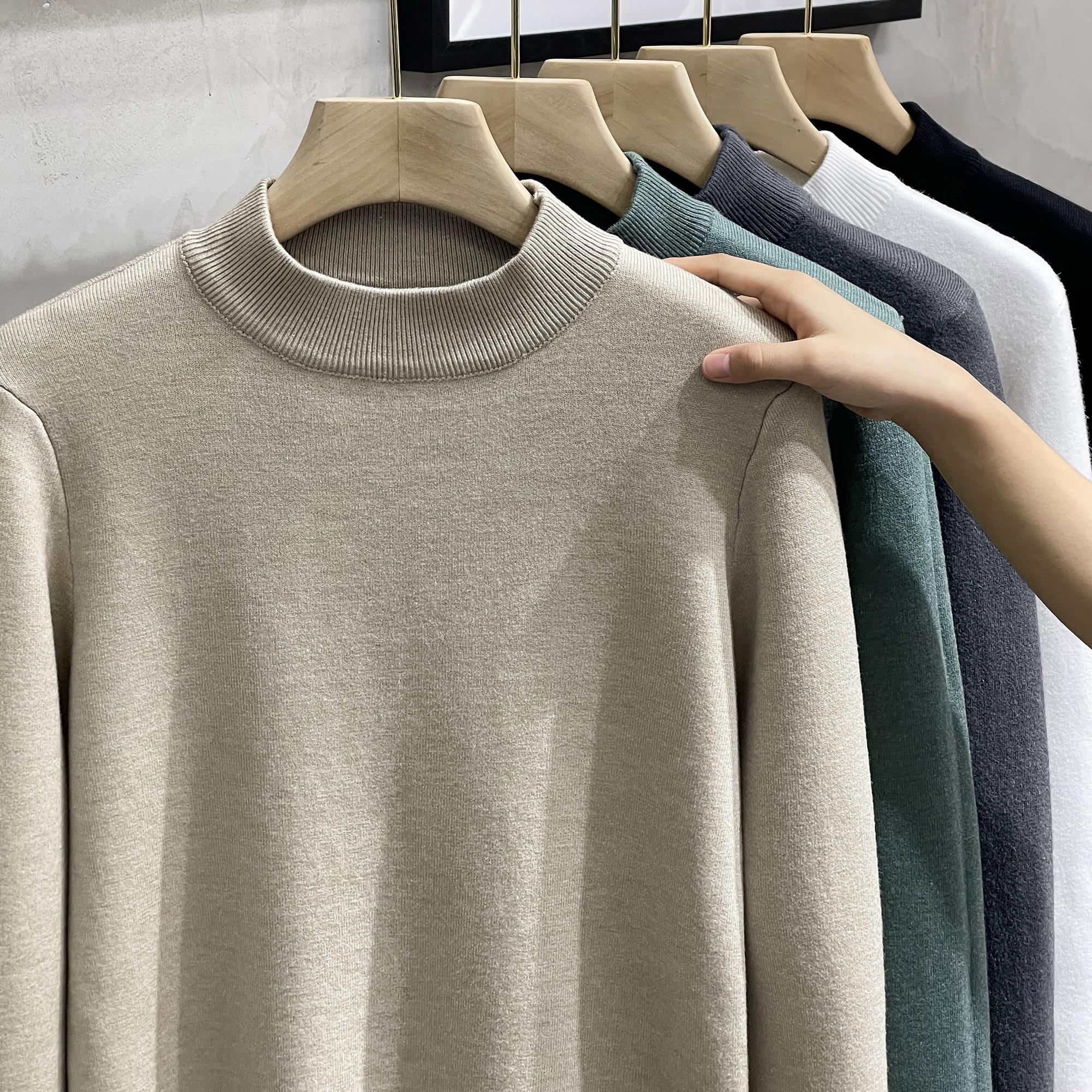 抗起球半高领毛衣男2024冬季一体绒打底毛衫加绒加厚中领针织衫