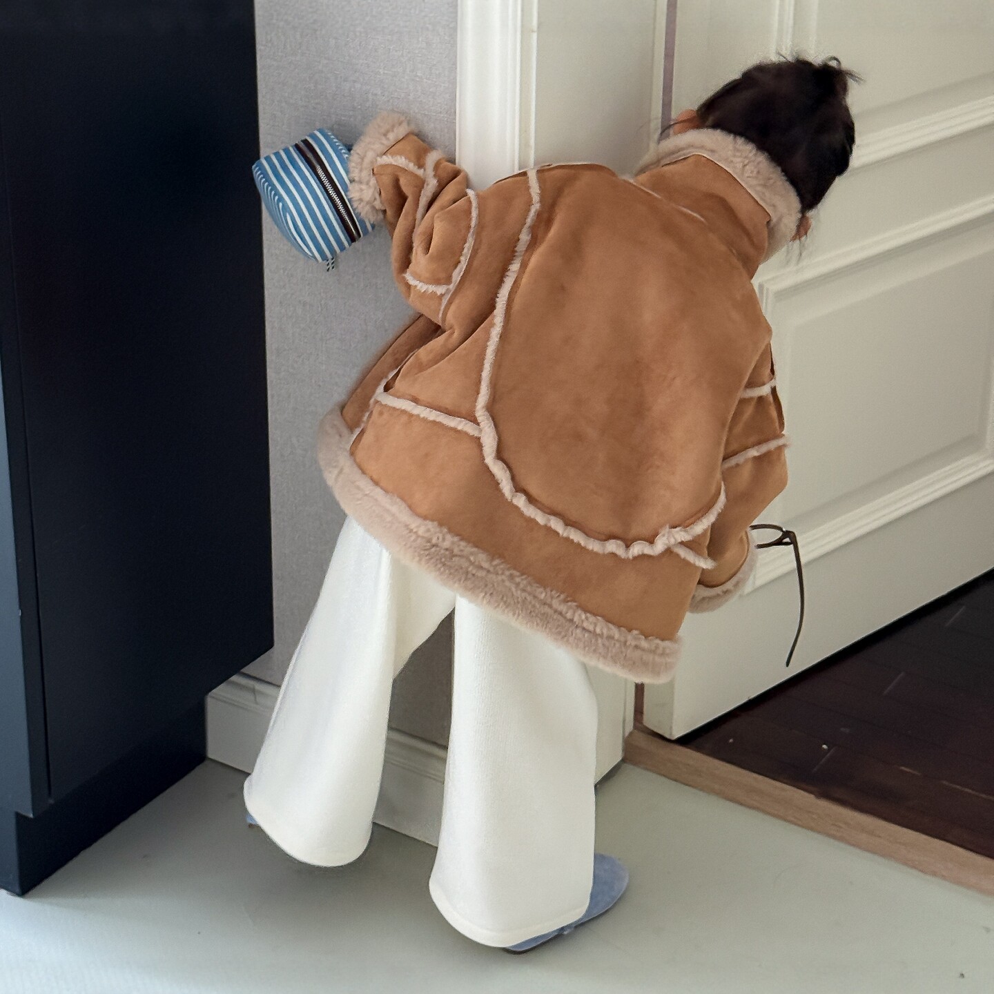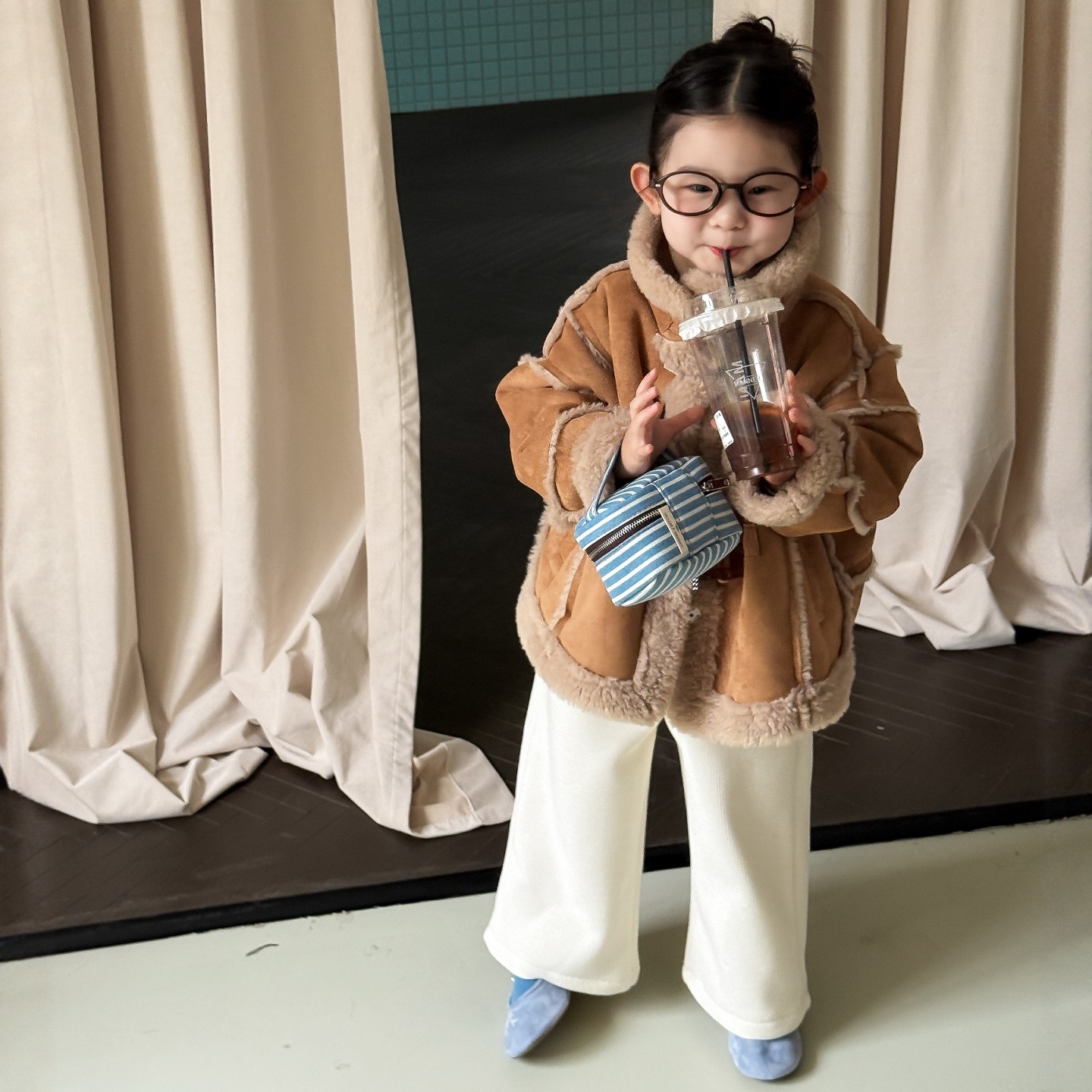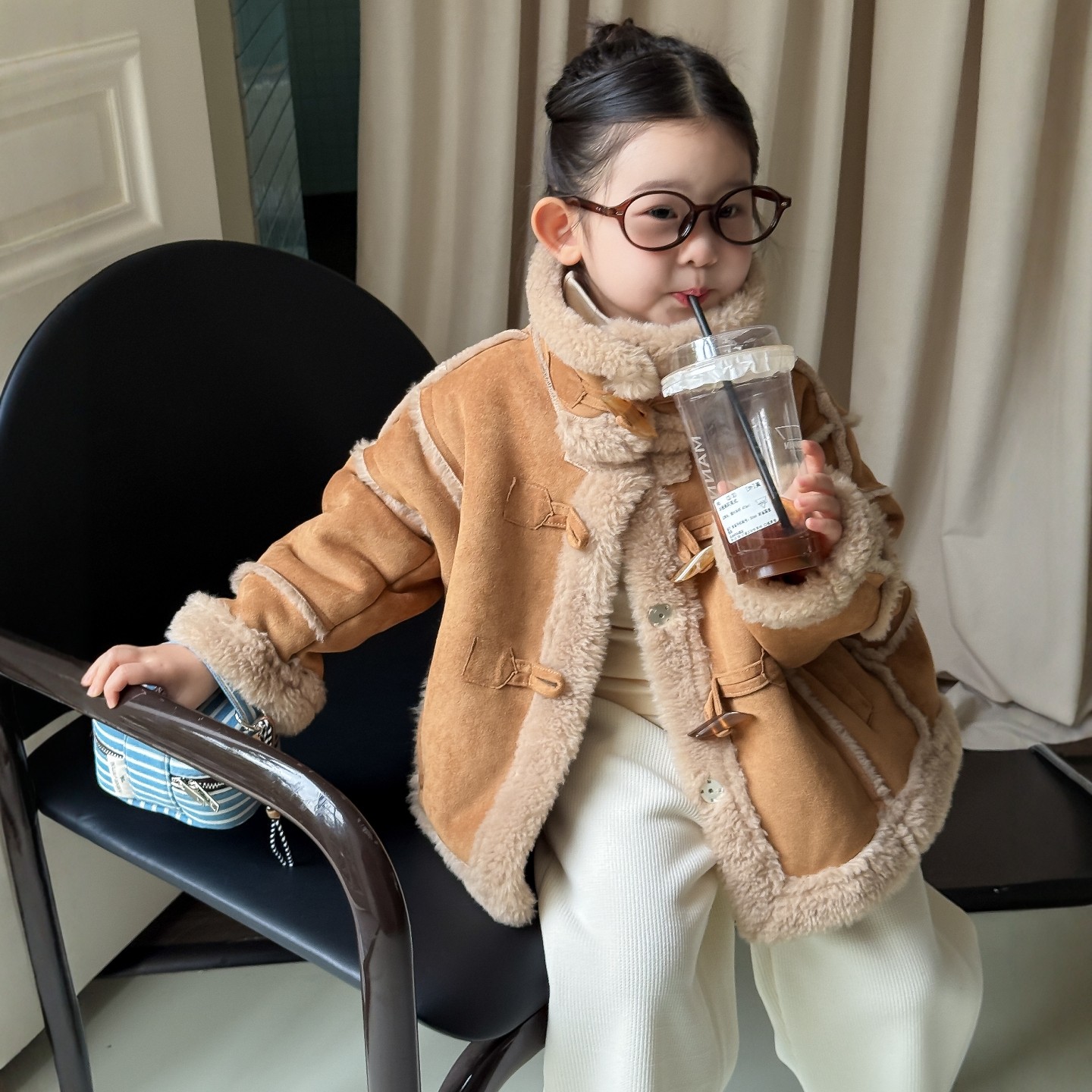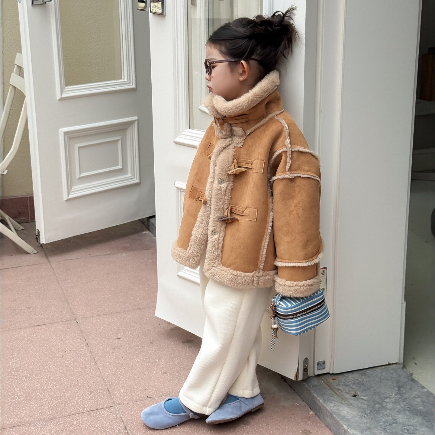 女童韩版皮毛一体麂皮外套冬款儿童装加厚短款上衣女宝宝保暖夹克