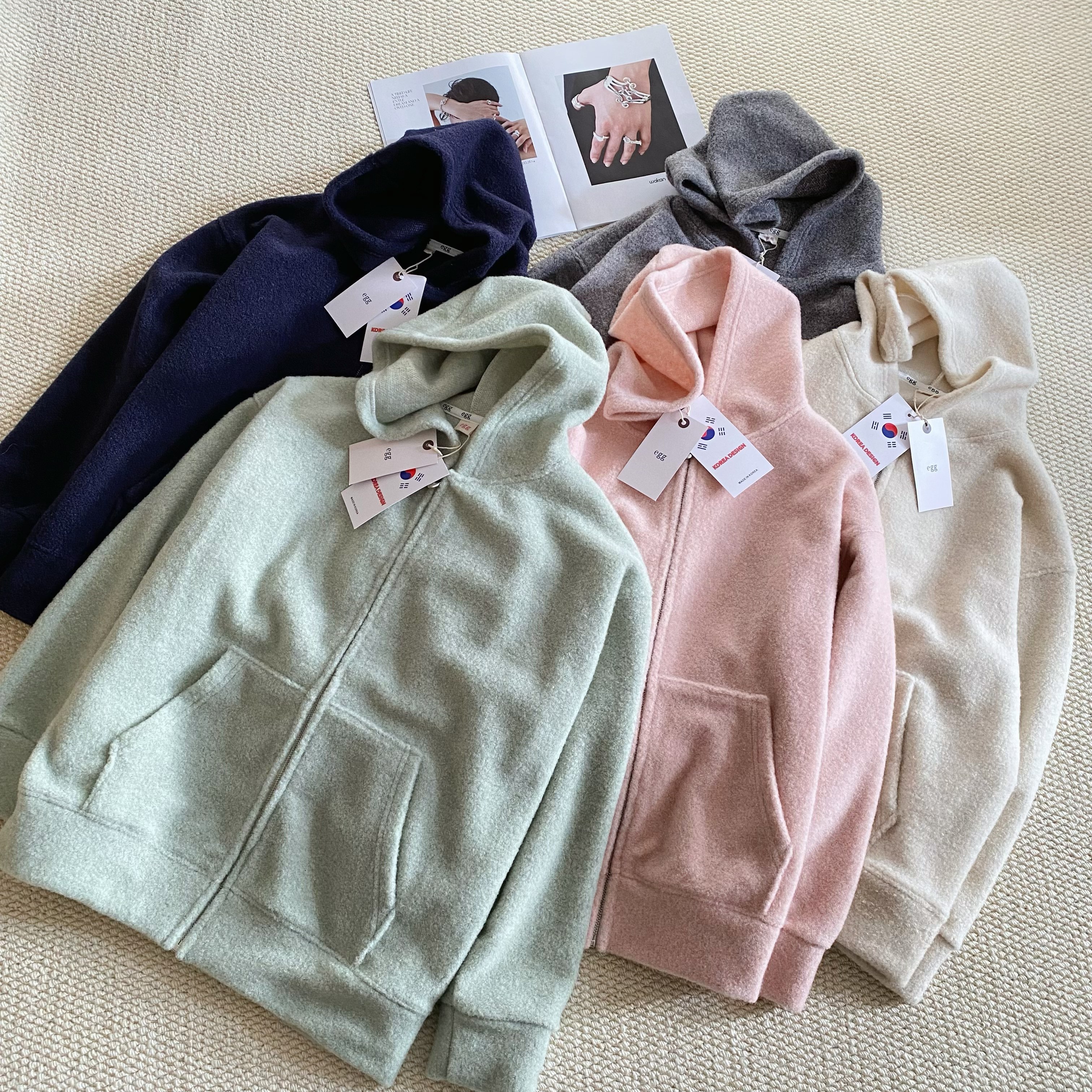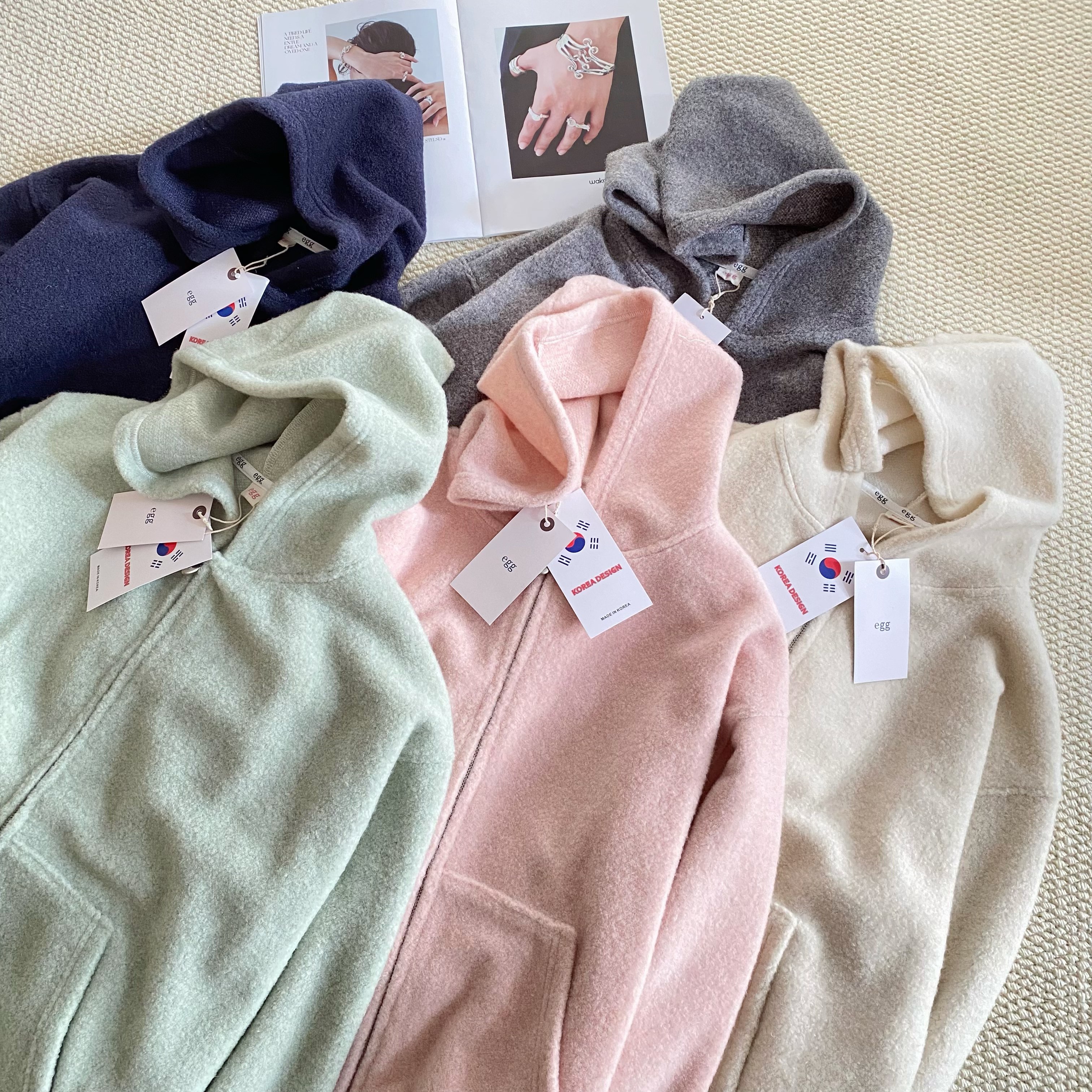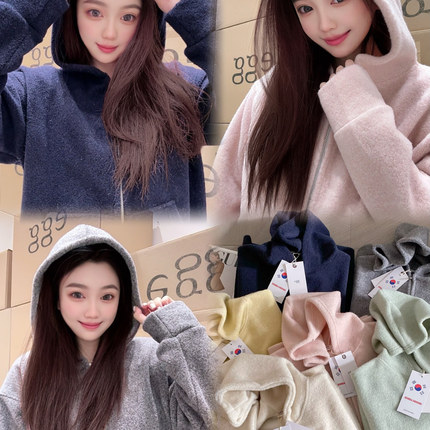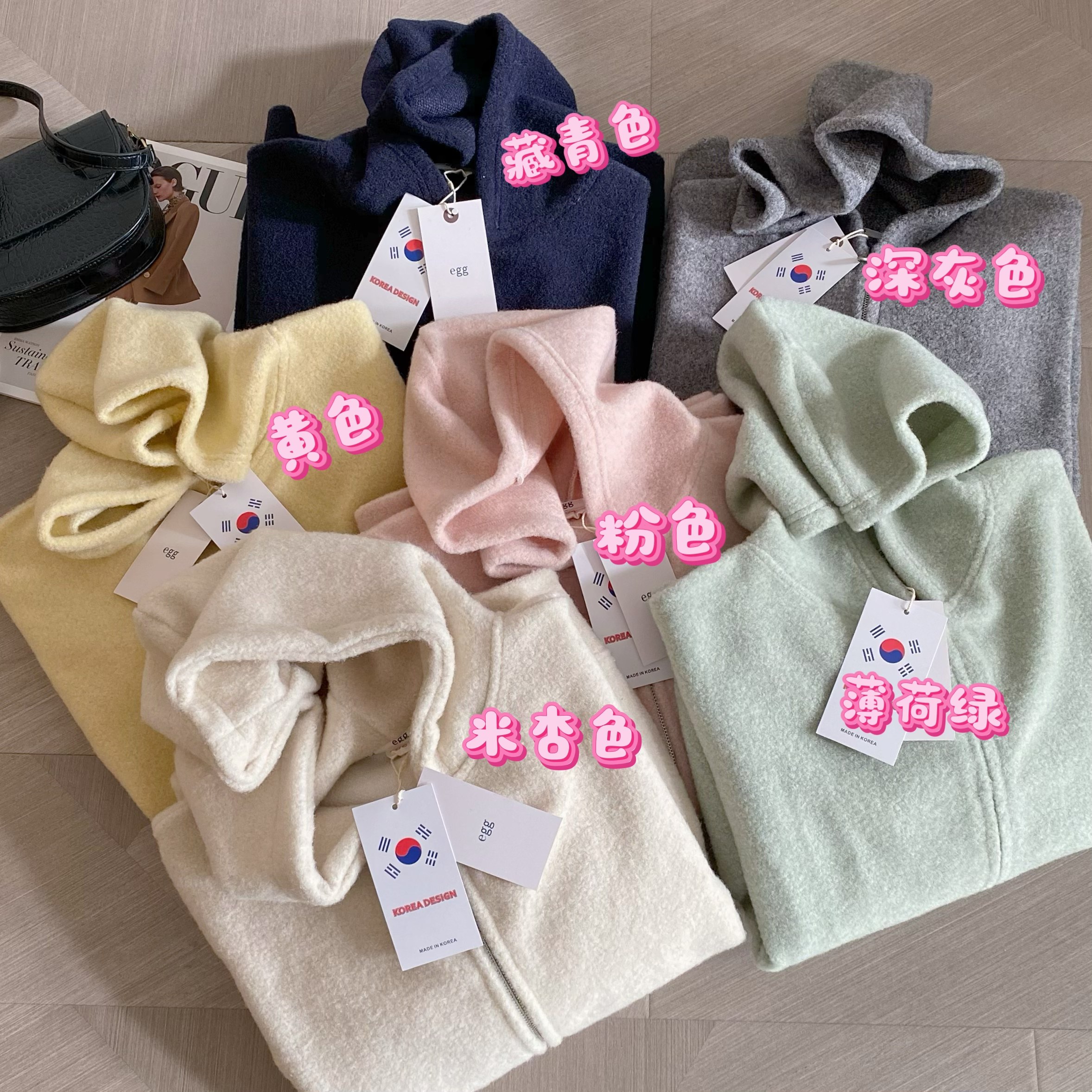 韩egg加绒加厚保暖双面绒感外套女宽松连帽长袖拉链卫衣外套