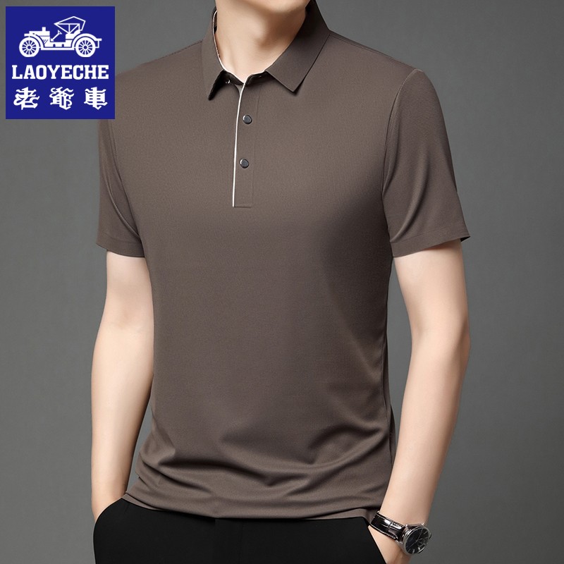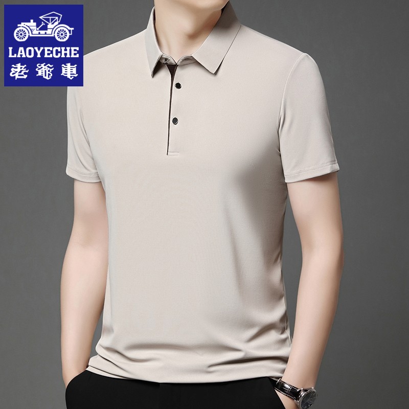 【冰丝弹力】老爷车男士夏季短袖T恤上衣翻领纯色POLO衫透气薄款