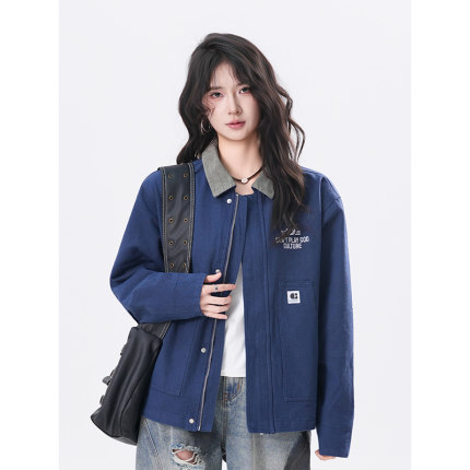 kk soul复古做旧字母印花拼色翻领夹克2025秋季新款休闲上衣外套