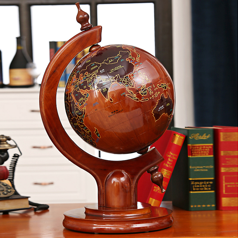 大号办公桌室实木地球仪摆件工艺品仿古木质桌面装饰礼品摆件
