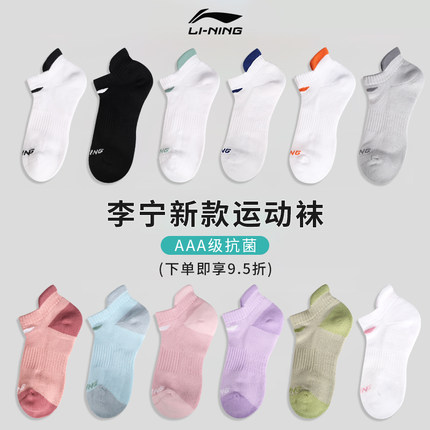 李宁运动袜子男士专业跑步训练吸汗透气抗菌防嗅女船袜短袜羽毛球