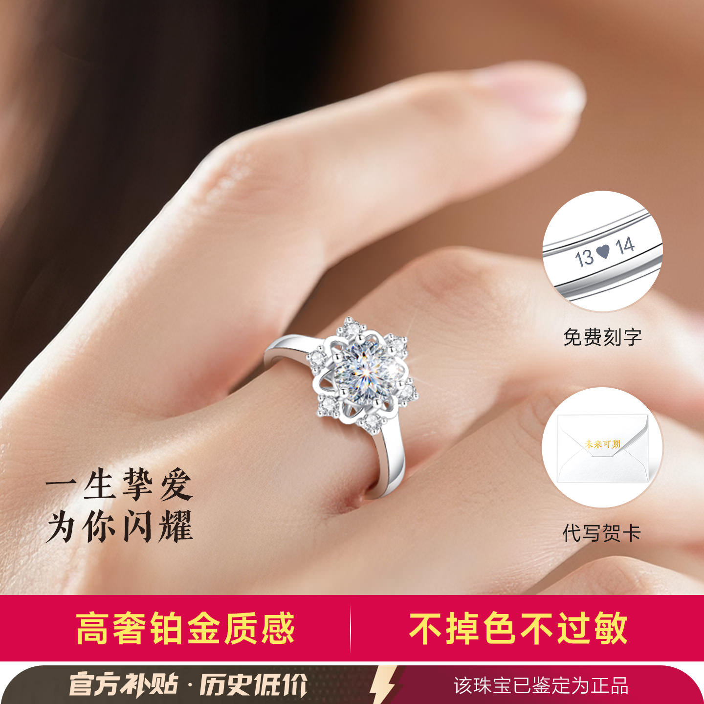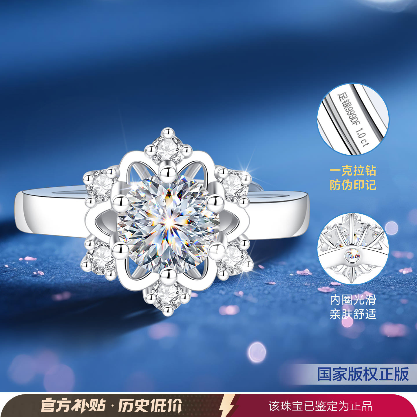 雪花纯银999银戒指女士女D色莫桑钻钻戒婚礼结婚求婚订婚情侣对戒