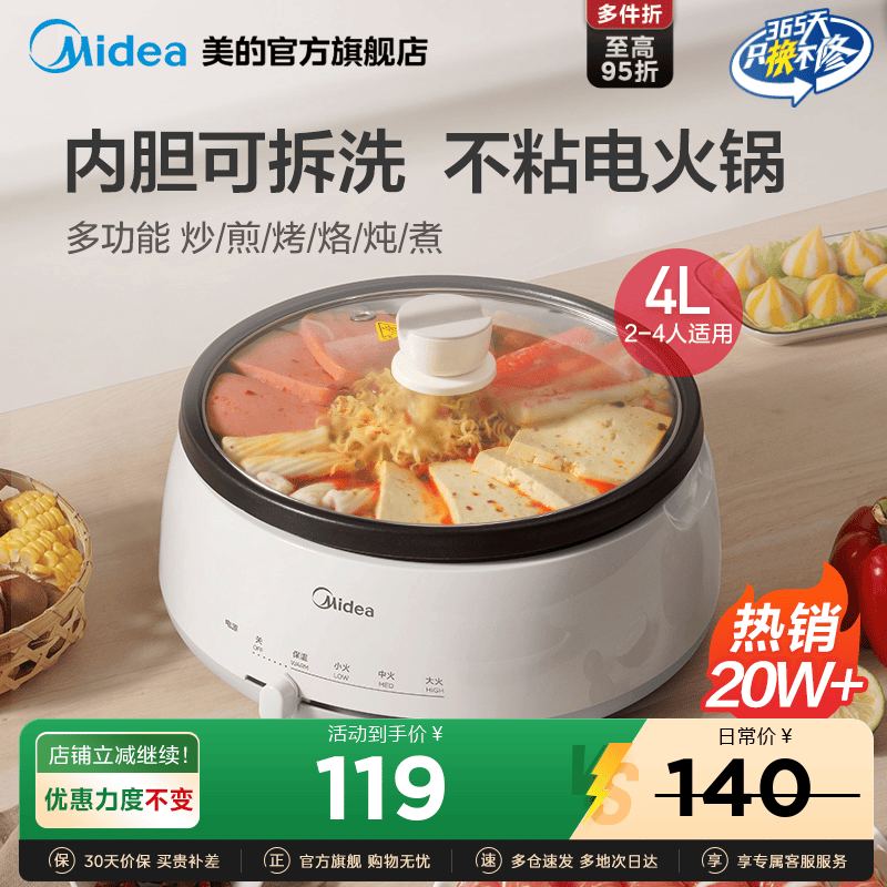 美的电煮锅多功能大容量分体