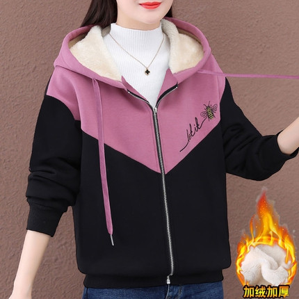 厂家直销亏本便宜加绒女士卫衣2022年新款秋冬季加厚拉链时尚保暖